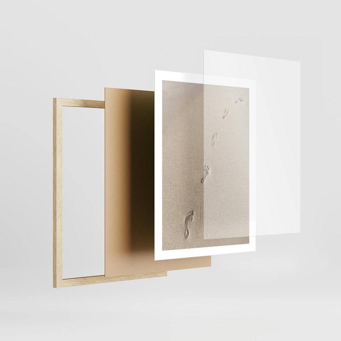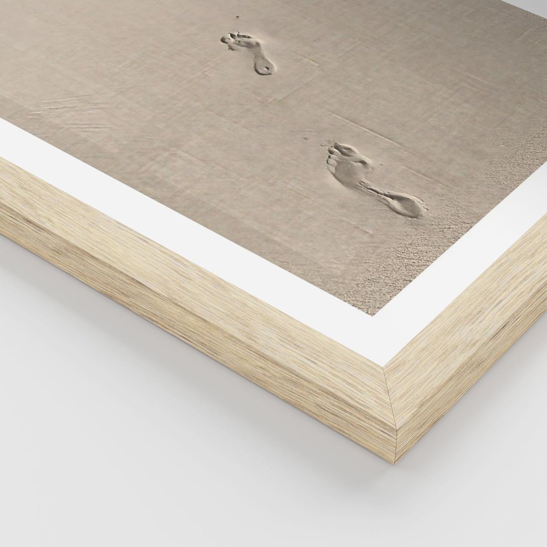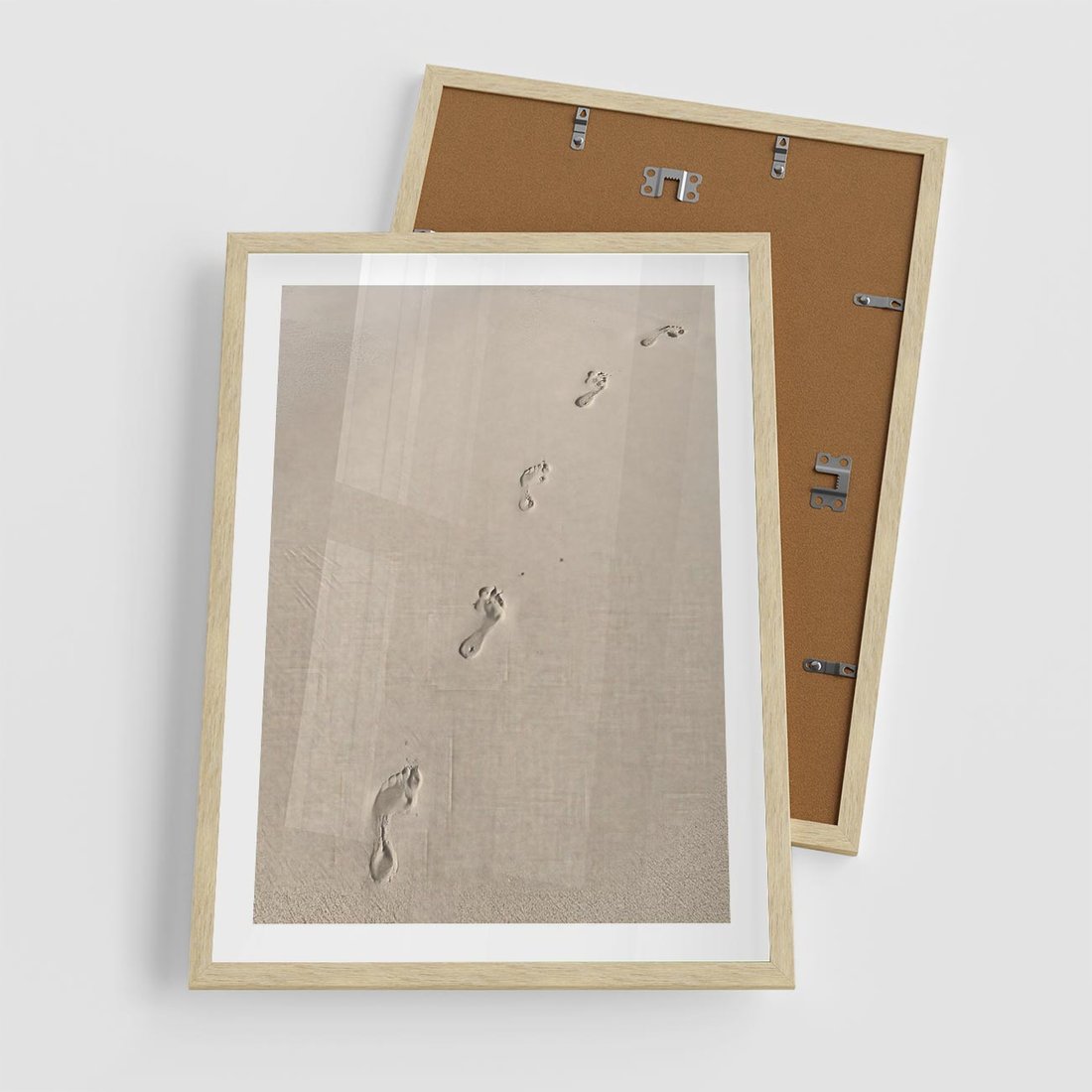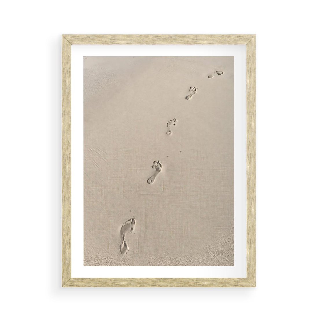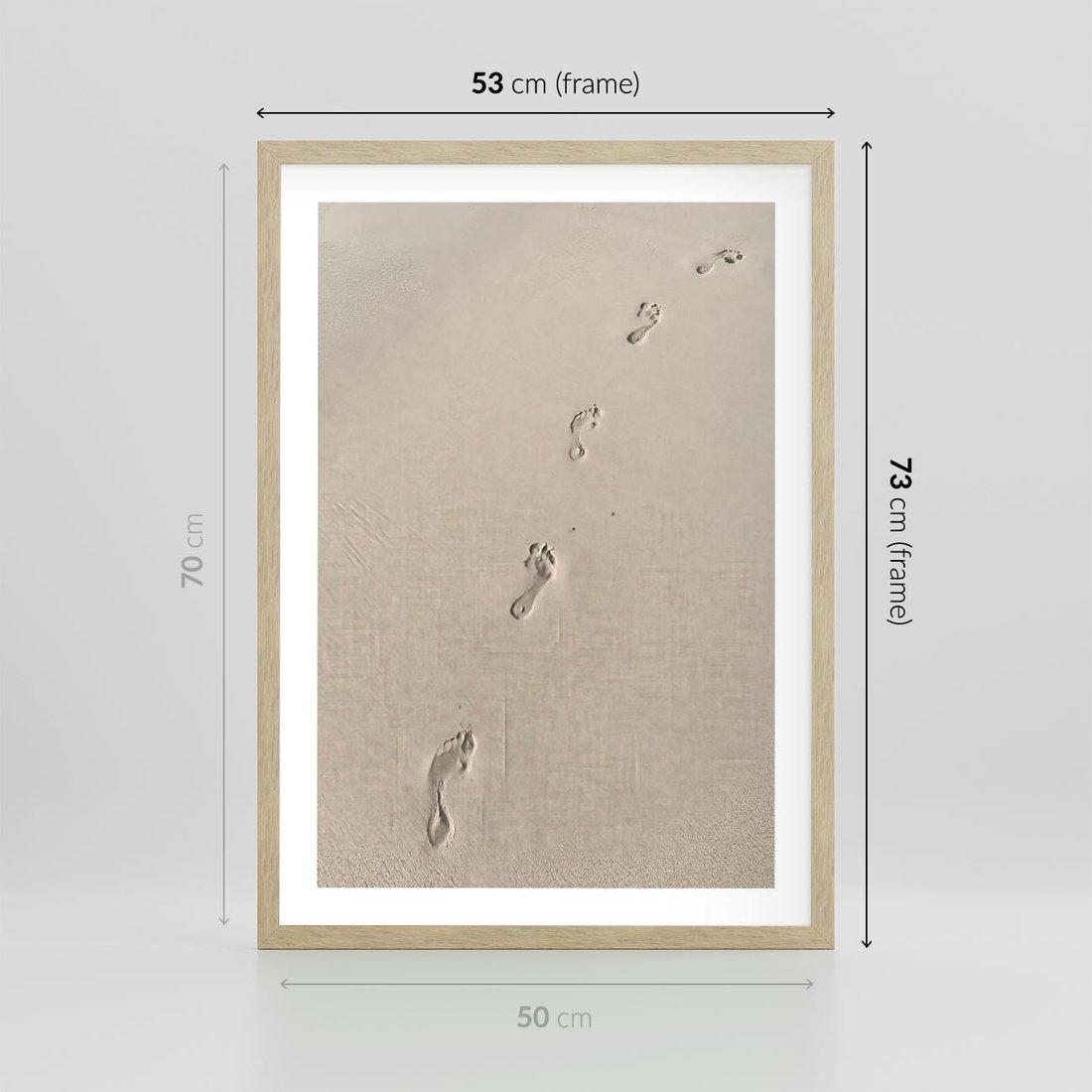 Plakat w ramie 50x70 - Ślady na Złocistym Piasku - piasek, ślady stóp na piasku - rama drewno