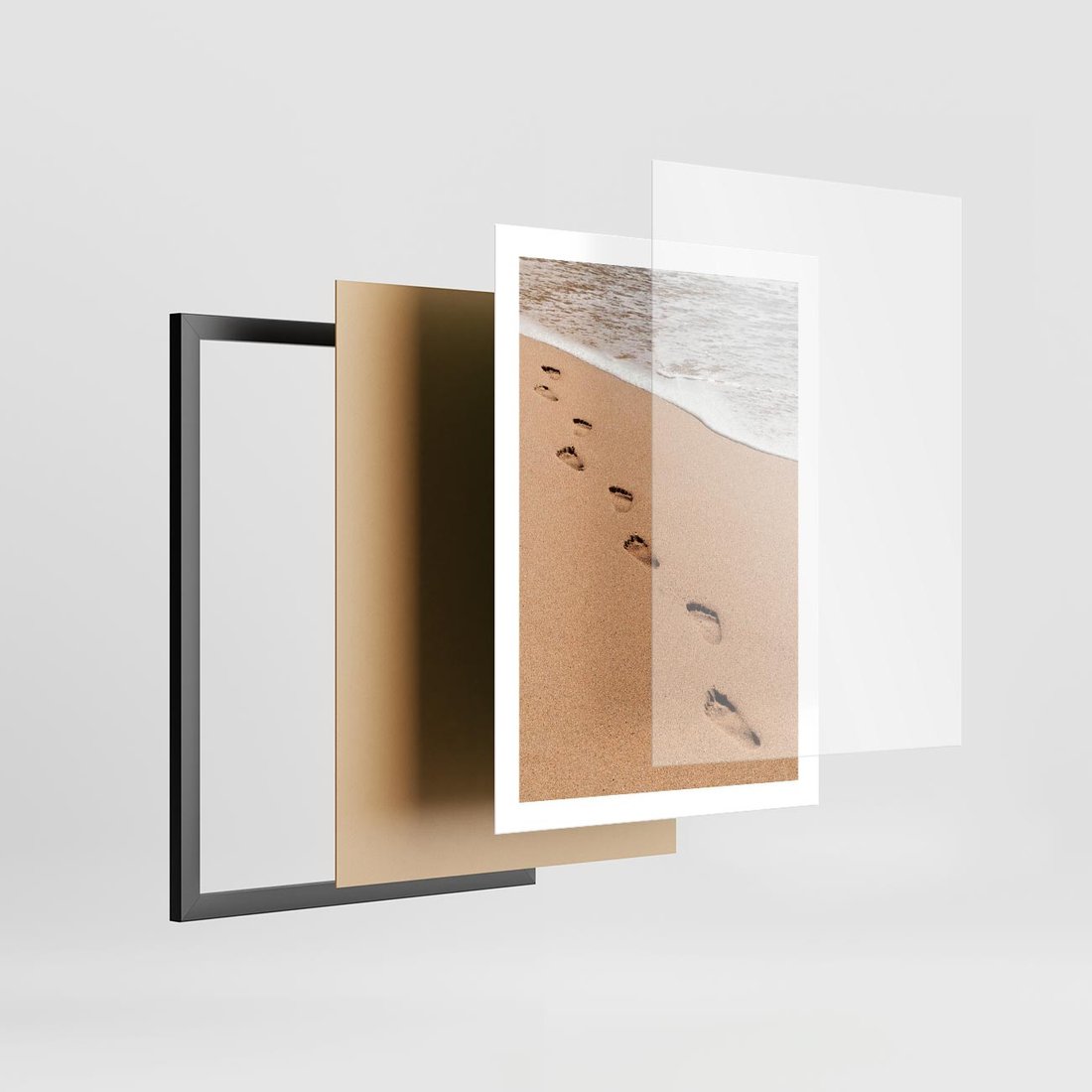 - Plakat w ramie 50x70 - Ślady Stóp na Plaży: Spacer nad Morzem