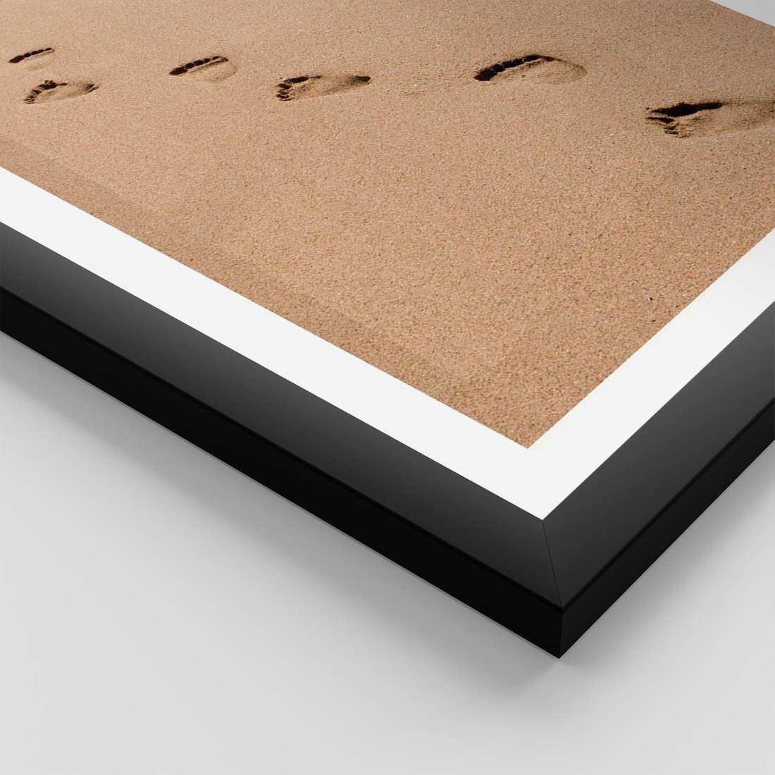 Plakat w ramie 50x70 - Ślady Stóp na Plaży: Spacer nad Morzem - plaża, ślady stóp na piasku - rama czarna