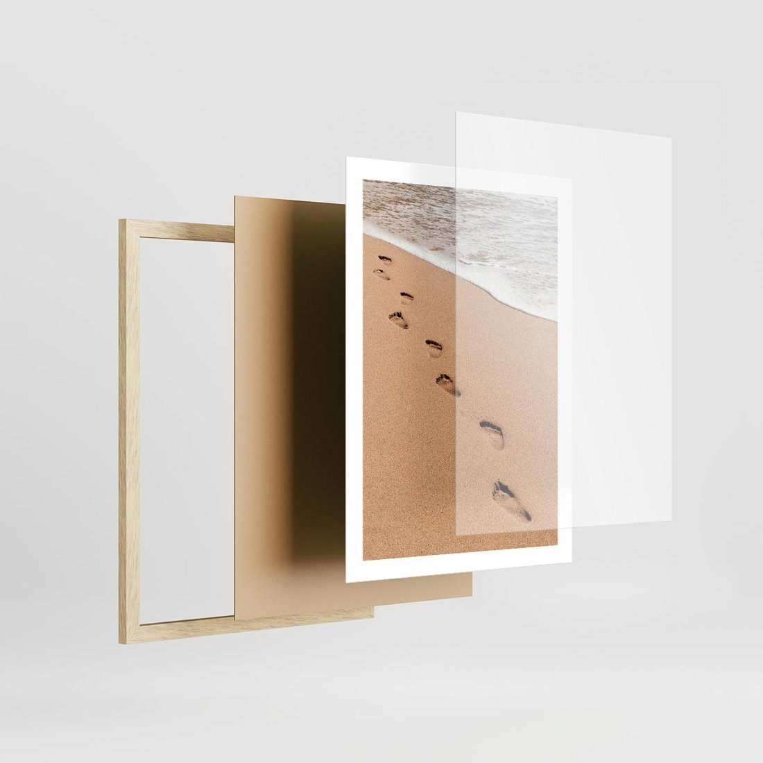 - Plakat w ramie 50x70 - Ślady Stóp na Plaży: Spacer nad Morzem