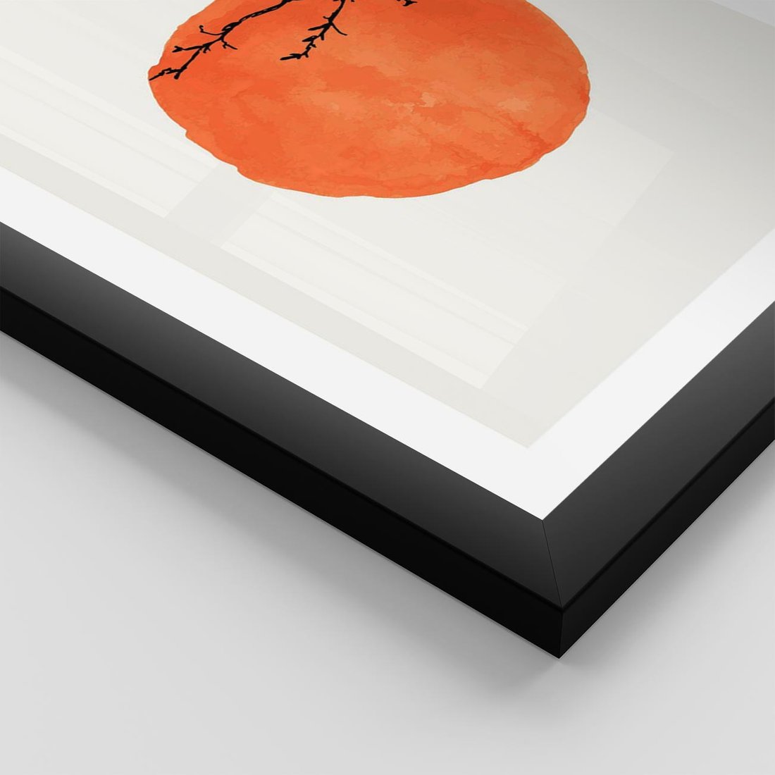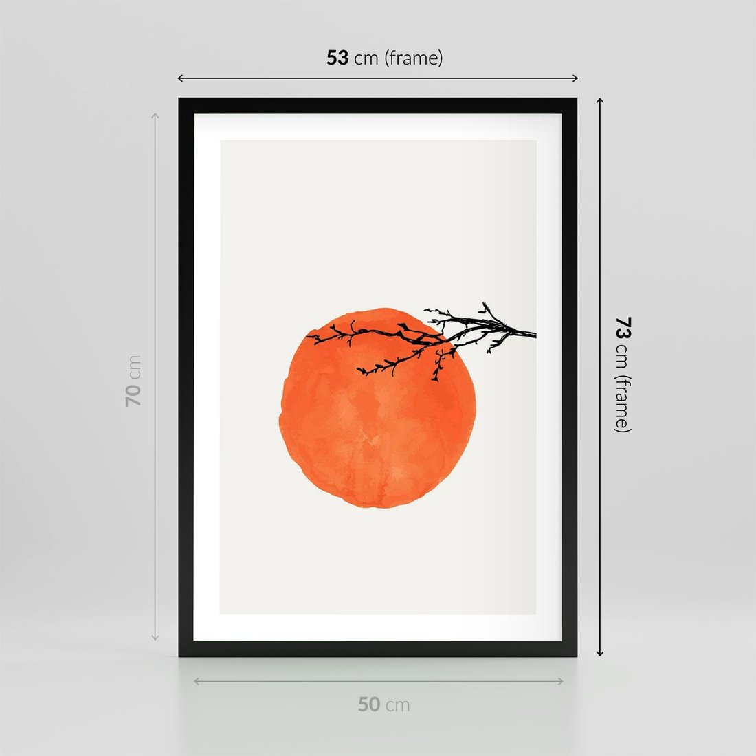 Plakat w ramie 50x70 - Słońce i Gałązka - pomarańczowe słońce, gałązka - rama czarna