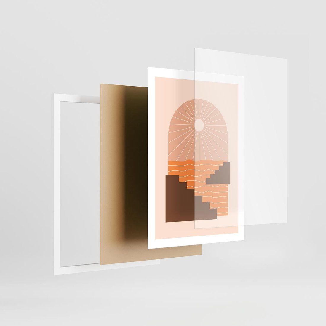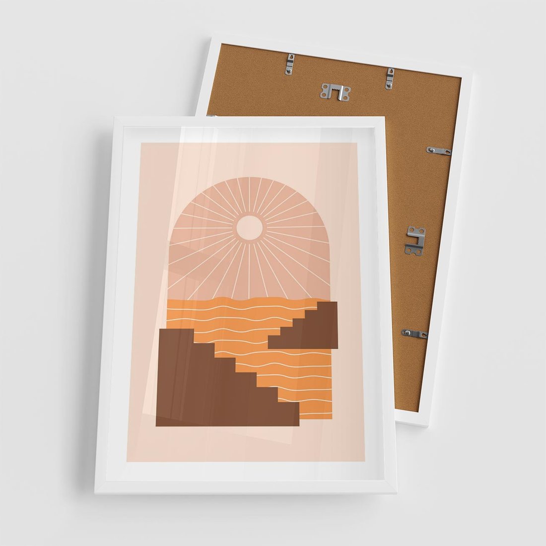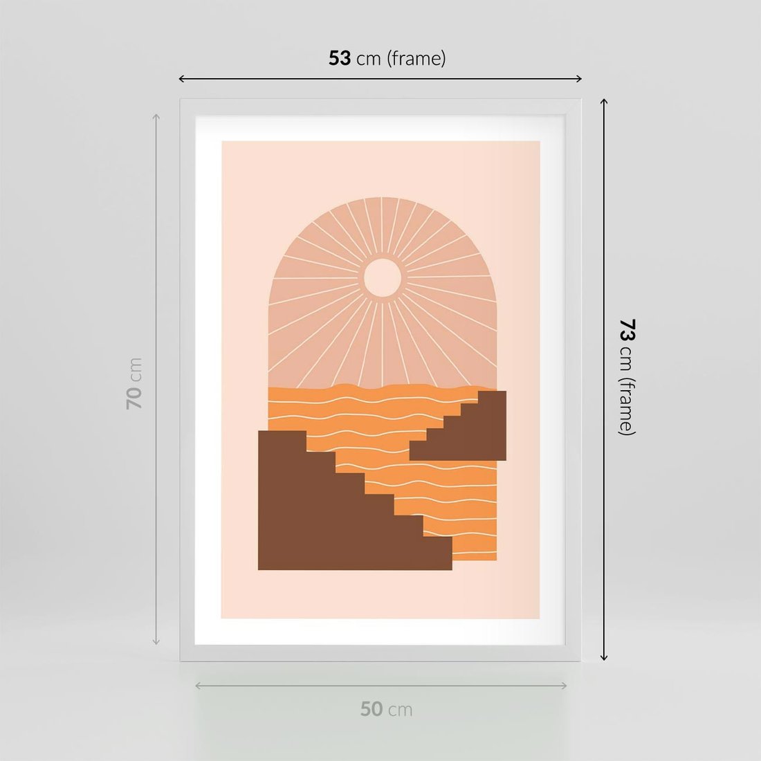 Plakat w ramie 50x70 - Słoneczne Inspiracje w Stylu Boho - boho grafika, słońce - rama biała
