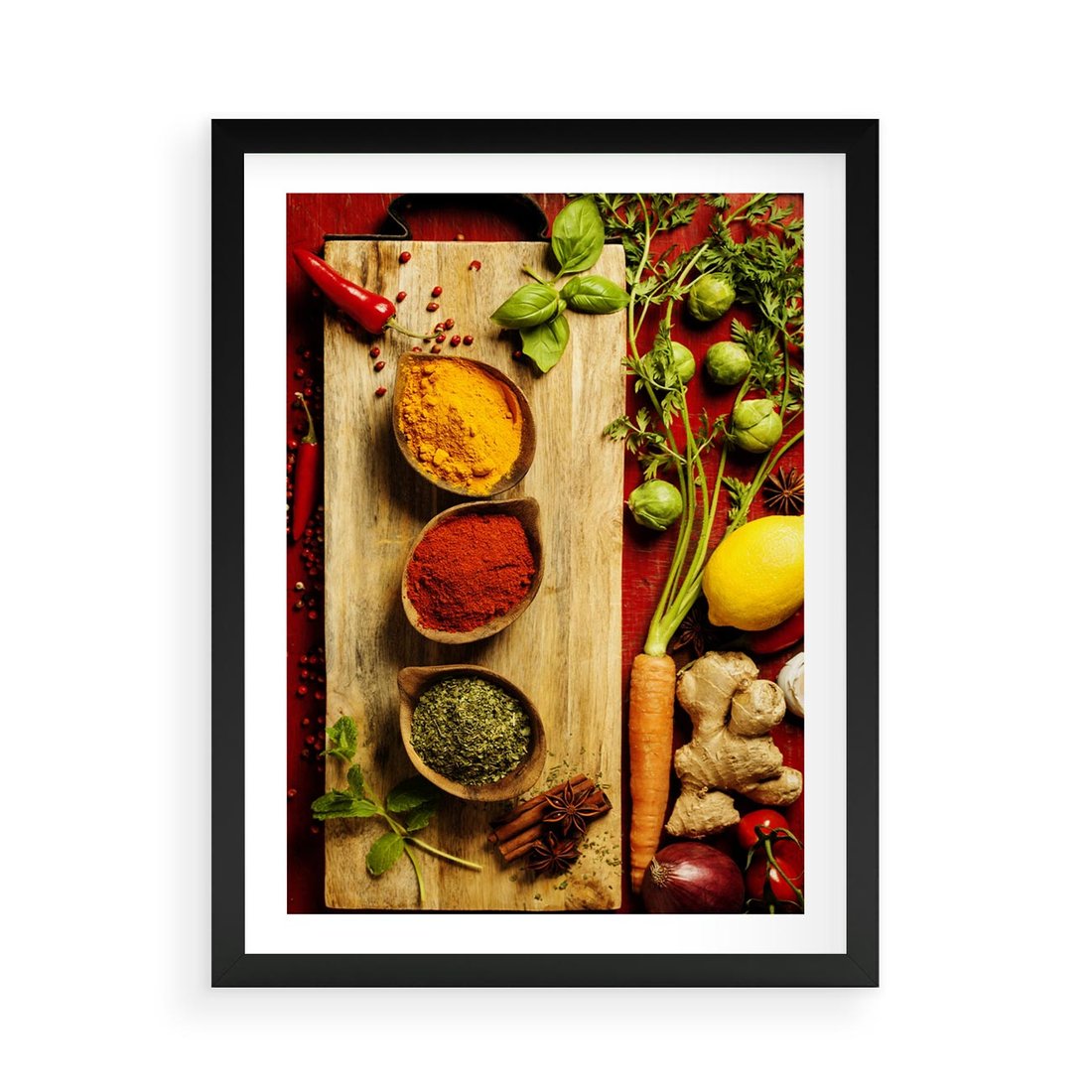 Ten apetyczny obraz z różnymi przyprawami wprowadzi do Twojej kuchni smakowy zmysł i kulinarną kreatywność. Odkryj różnorodność aromatów i dodaj wyrazistości do swojej kuchni.