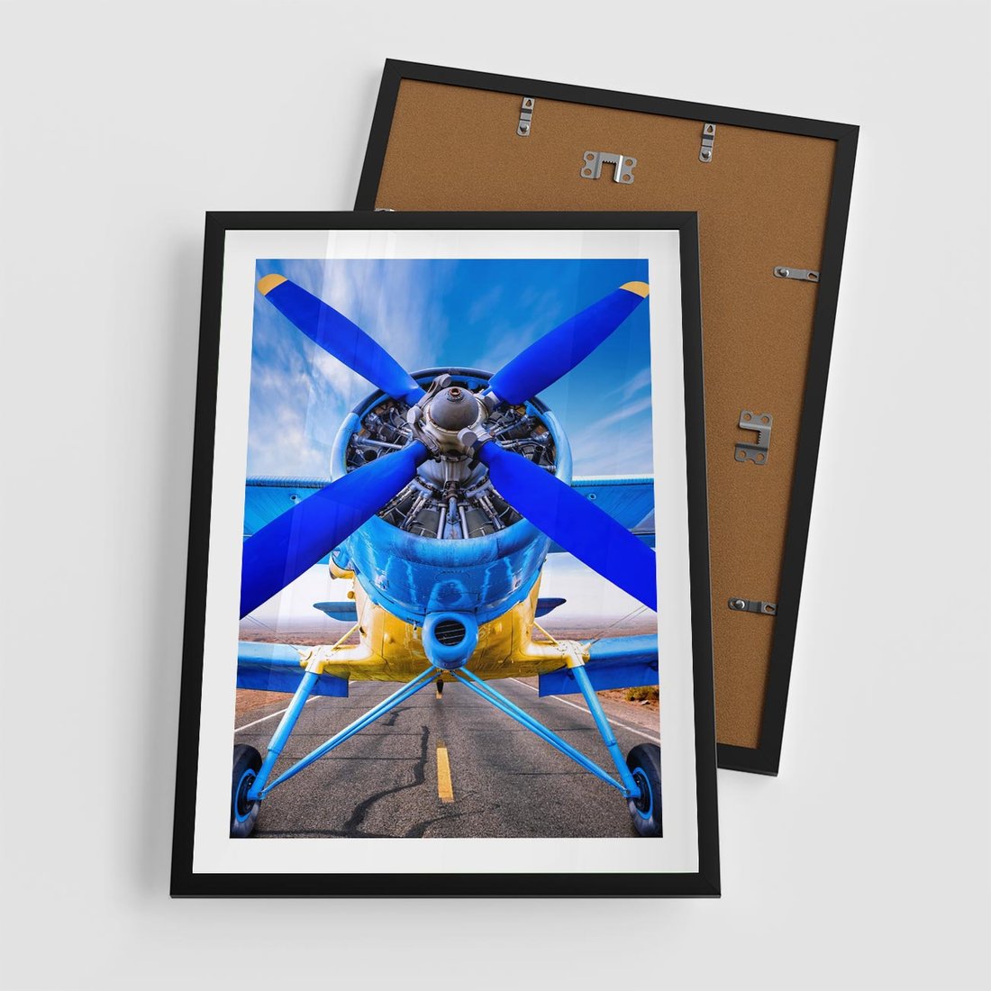 Plakat w ramie 50x70 - Śmigłowiec indygo - samolot, śmigło - rama czarna
