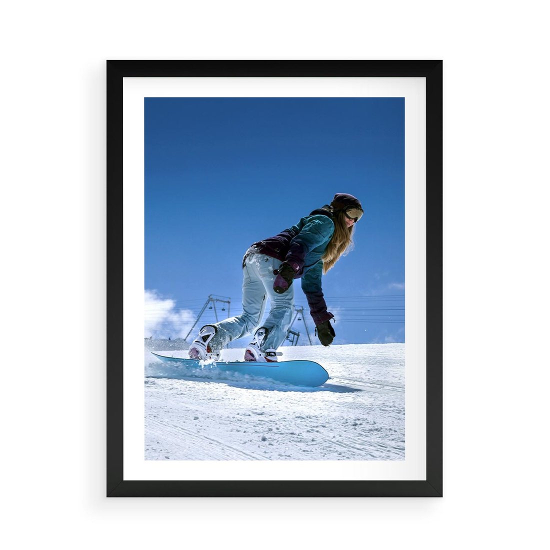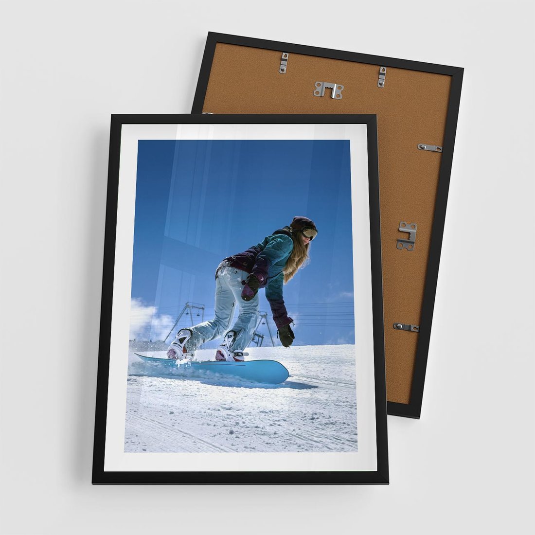 Plakat w ramie 50x70 - Snowboard na zimowych zboczach - snowboard, zima - rama czarna