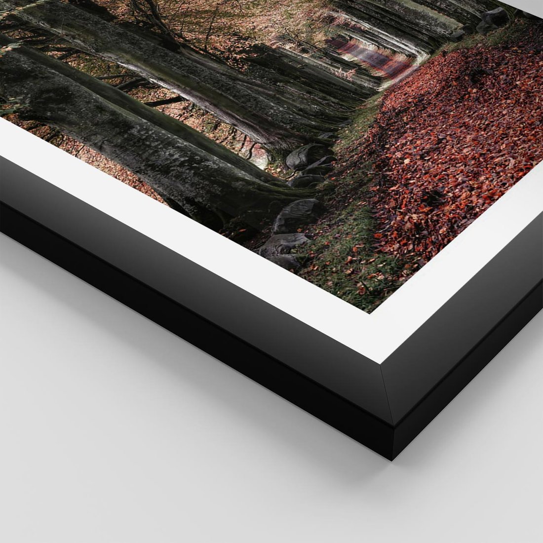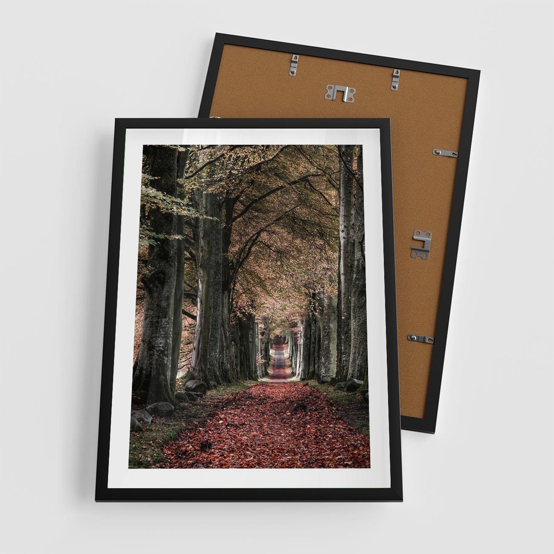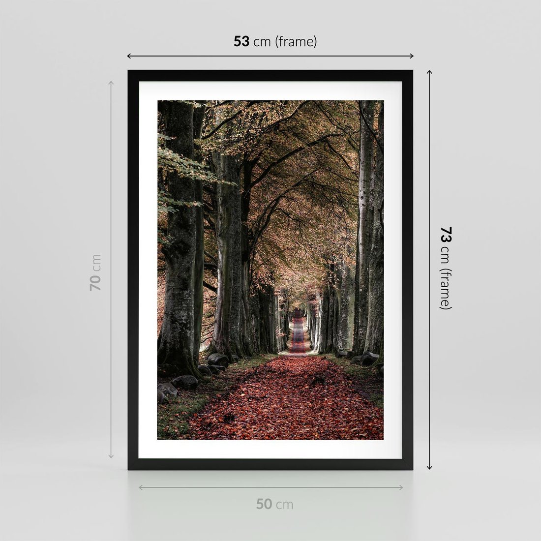 Plakat w ramie 50x70 - Spacer po Leśnej Drodze - ścieżka w lesie, jesień suche liście - rama czarna