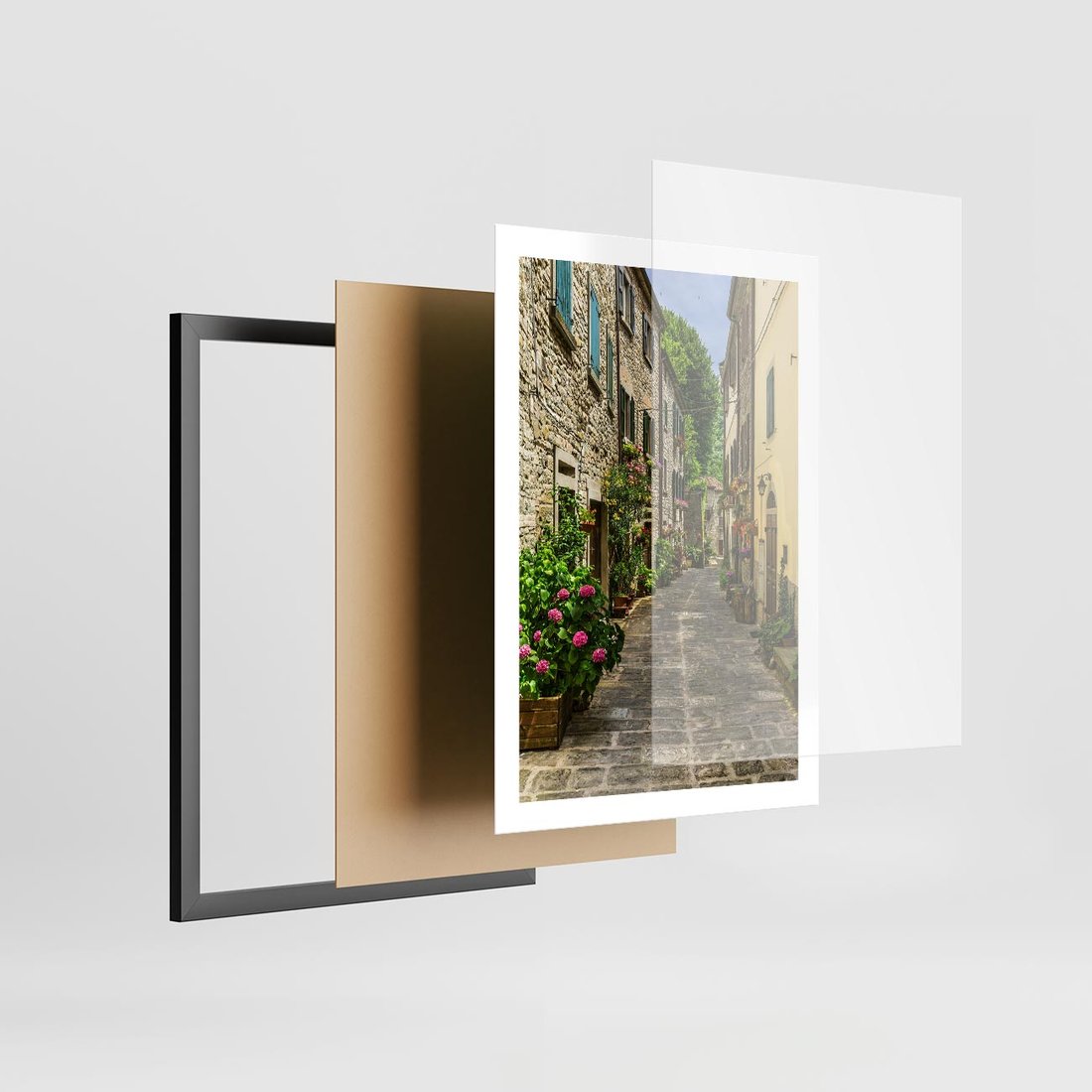 Podziwiaj magiczną uliczkę o głębokiej perspektywie na tym obrazie na płótnie. Ta realistyczna kompozycja przeniesie Cię do malowniczego miasteczka, gdzie kamienice i latarnie tworzą niezwykły widok. Pośród uliczkowego klimatu poczujesz atmosferę romantyzmu.