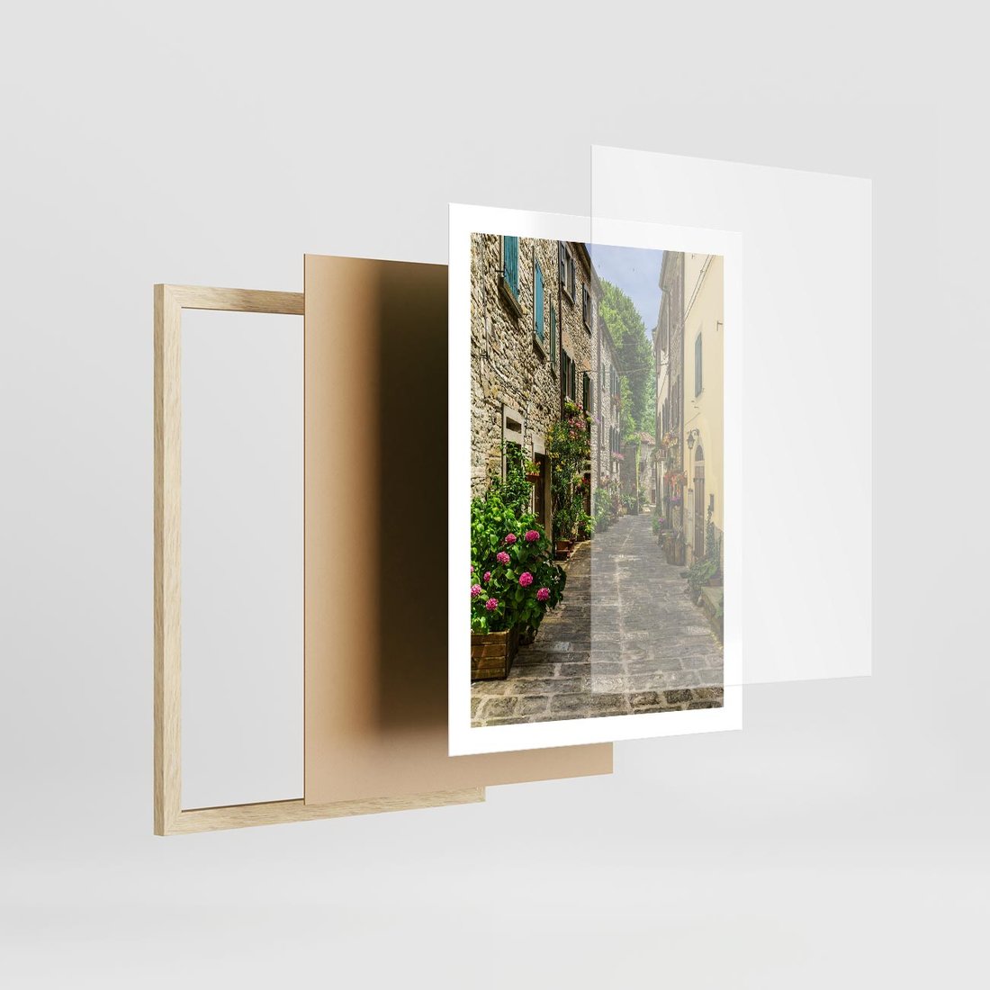 Podziwiaj magiczną uliczkę o głębokiej perspektywie na tym obrazie na płótnie. Ta realistyczna kompozycja przeniesie Cię do malowniczego miasteczka, gdzie kamienice i latarnie tworzą niezwykły widok. Pośród uliczkowego klimatu poczujesz atmosferę romantyzmu.