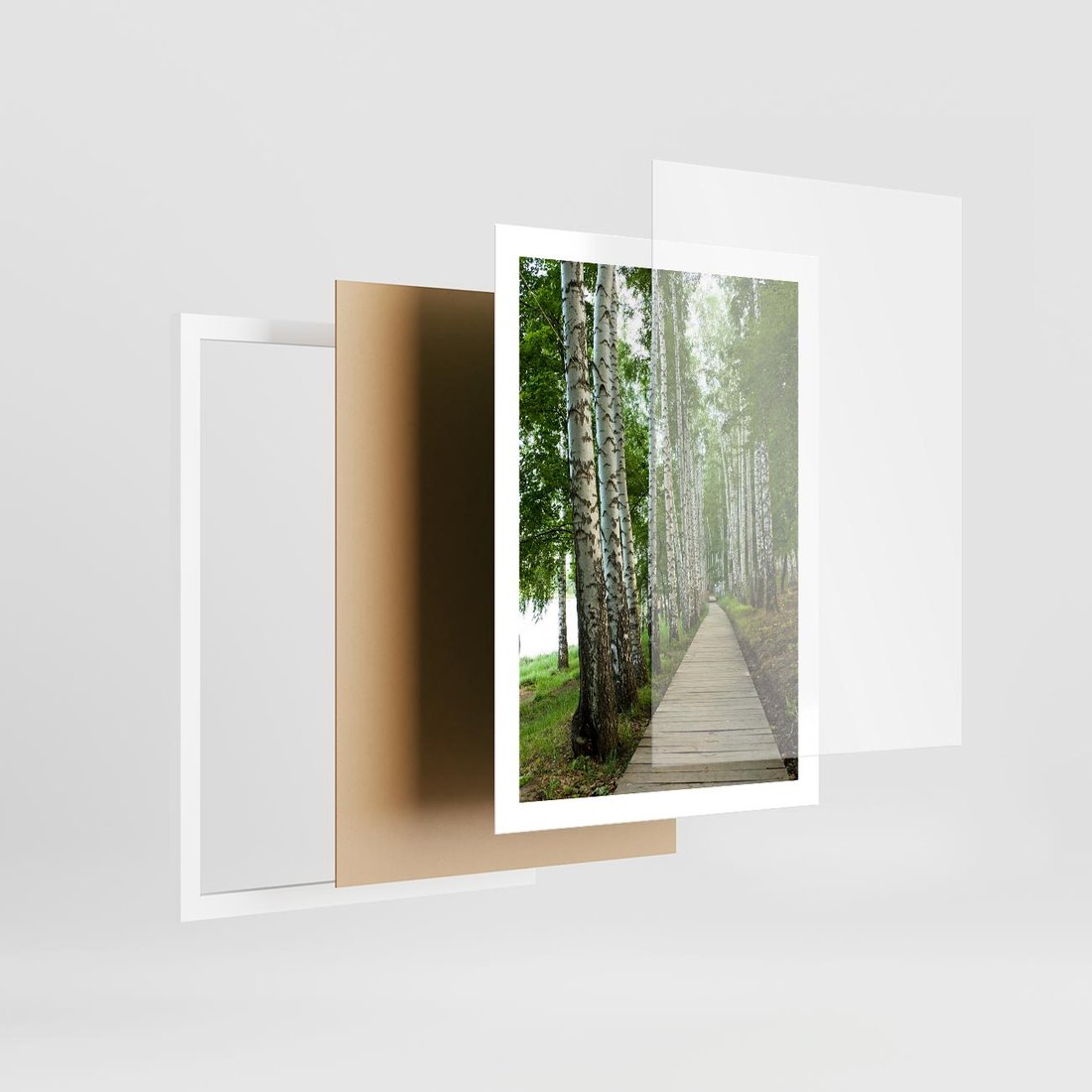 Plakat w ramie 50x70 - Spacer ścieżką przez brzozowy las - las, ścieżka - rama biała