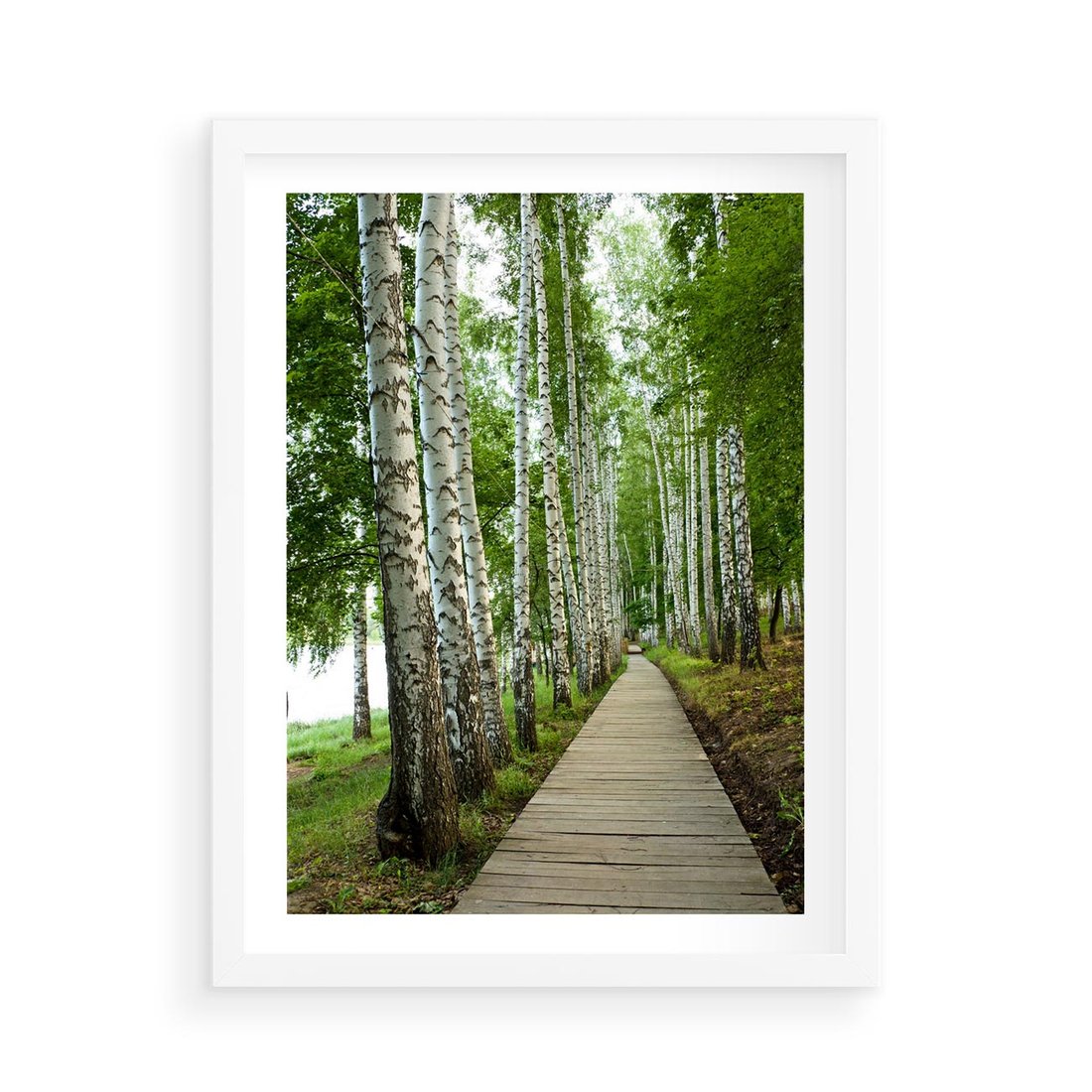 - Plakat w ramie 50x70 - Spacer ścieżką przez brzozowy las