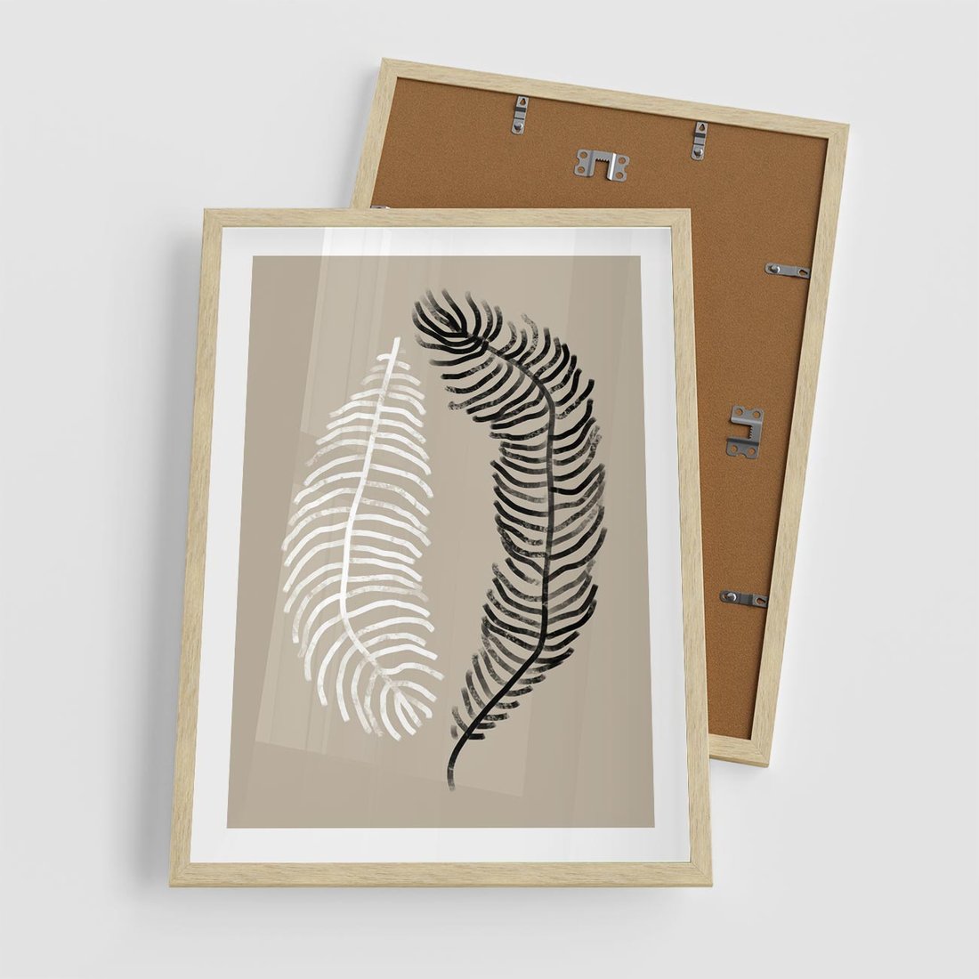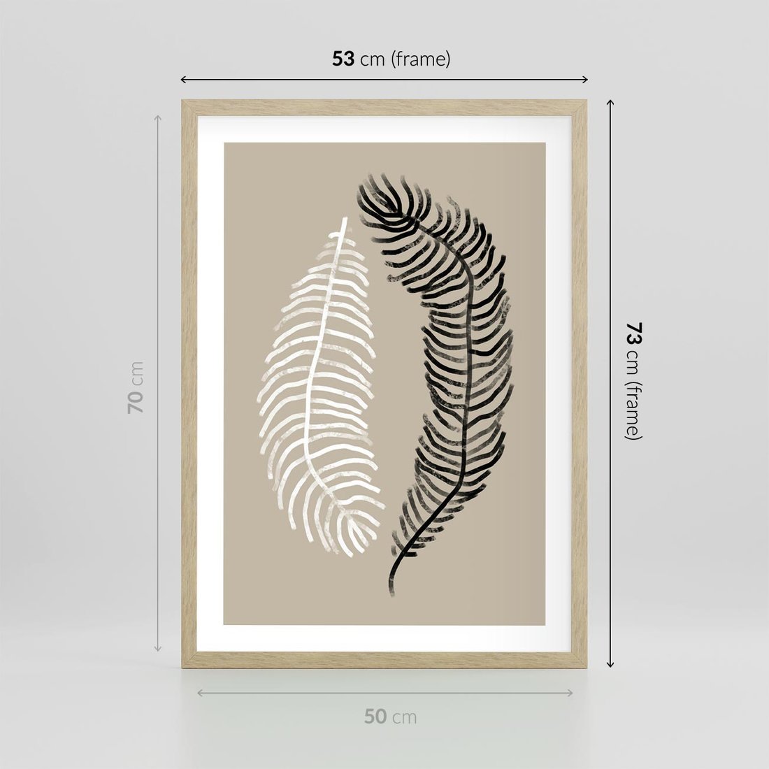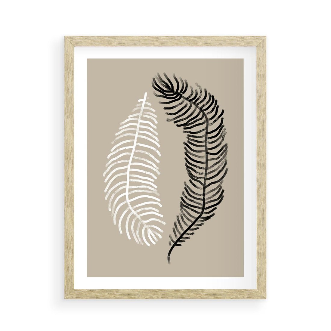 Plakat w ramie 50x70 - Spleciona Harmonia - sztuka nowoczesna, białe i czarne pióro - rama drewno