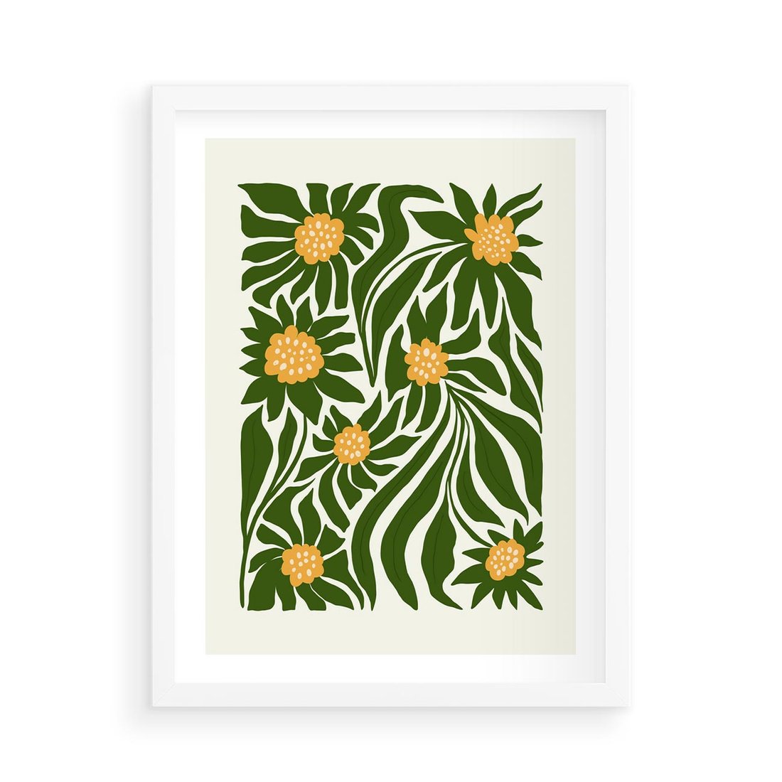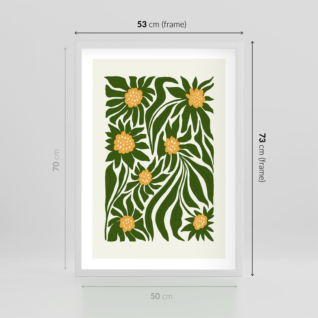Plakat w ramie 50x70 - Spojrzenie wgłąb roślinnego świata - abstrakcyjne kwiaty, kompozycja - rama biała