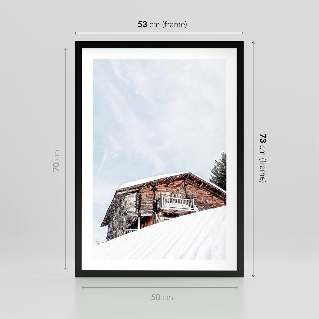 Plakat w ramie 50x70 - Spokój Górskiej Zimy - chatka w górach, domek górski - rama czarna