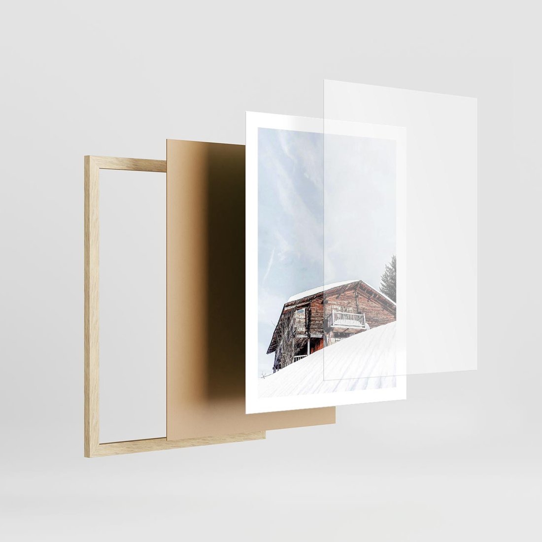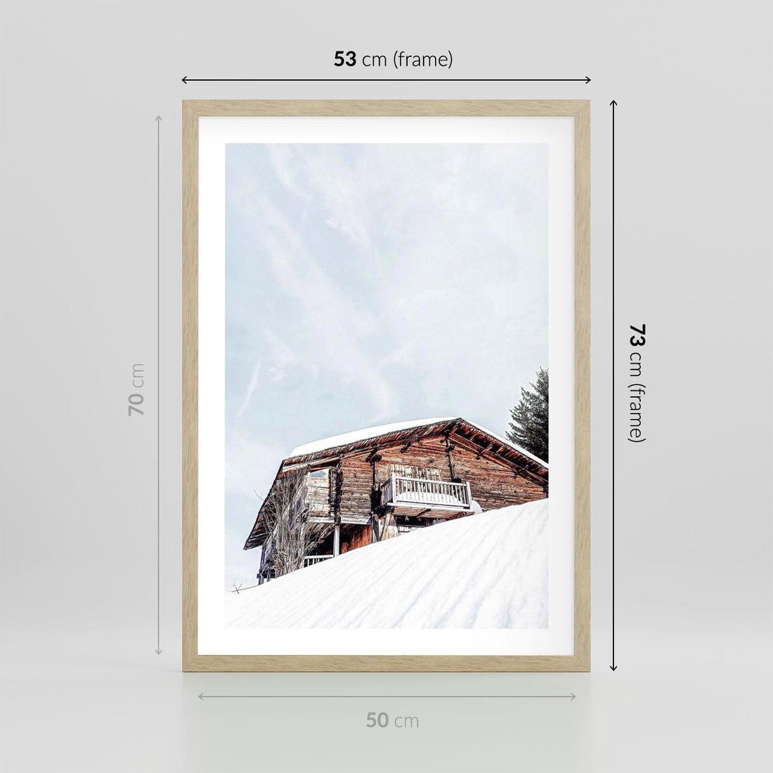 Plakat w ramie 50x70 - Spokój Górskiej Zimy - chatka w górach, domek górski - rama drewno