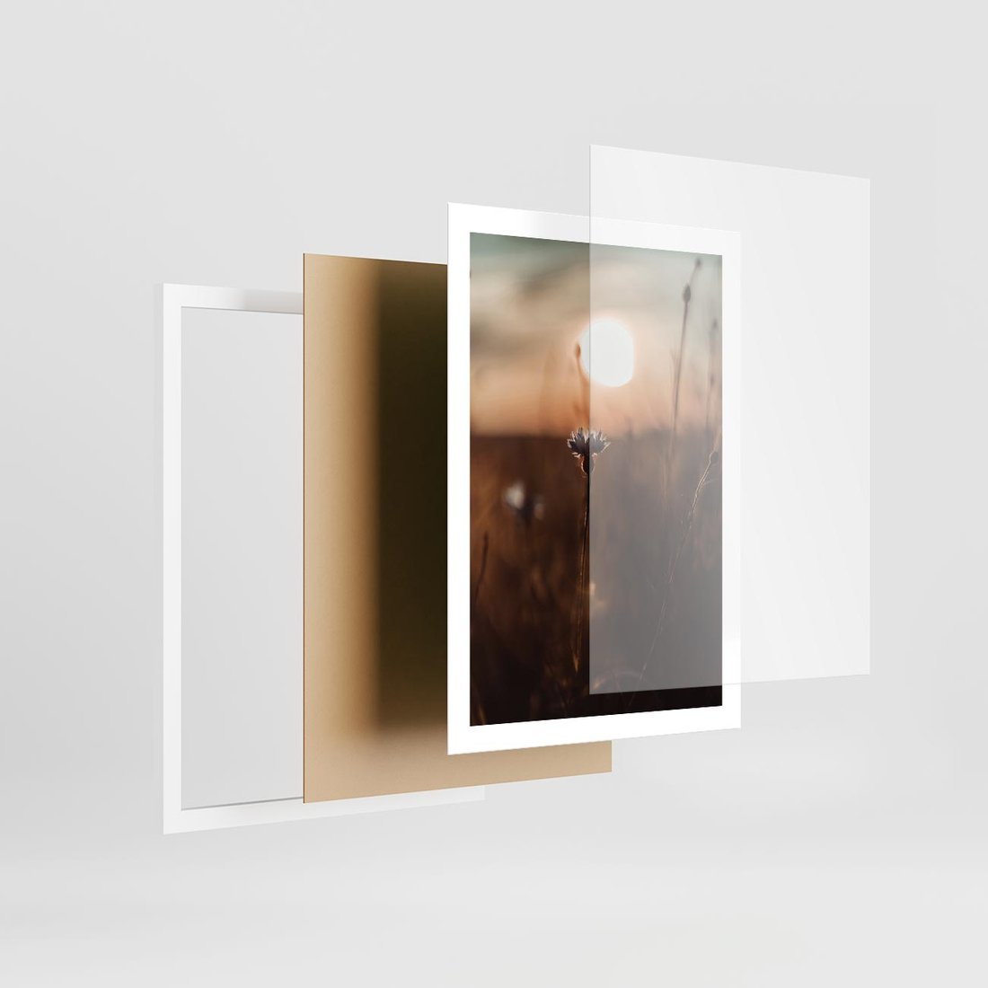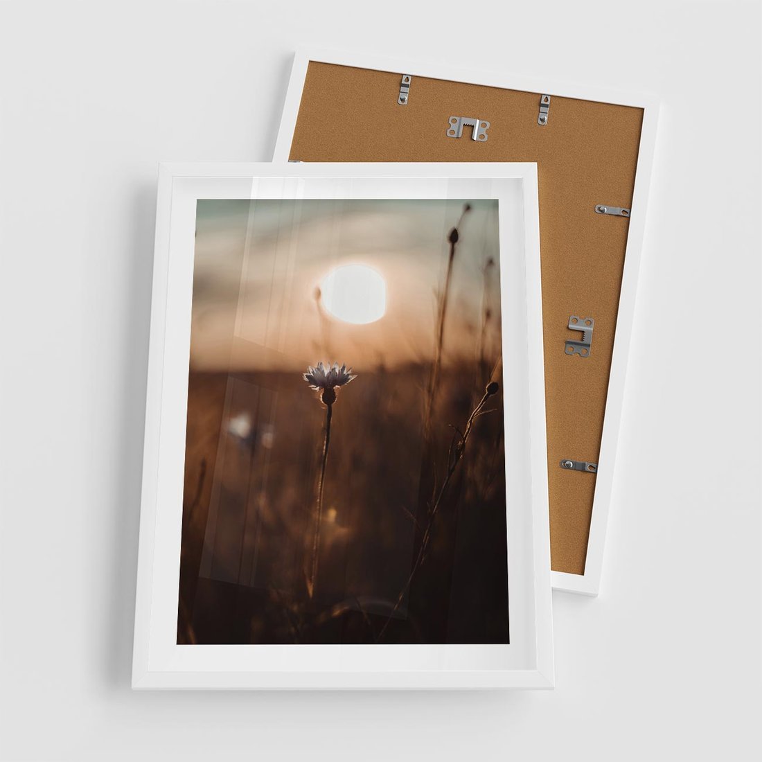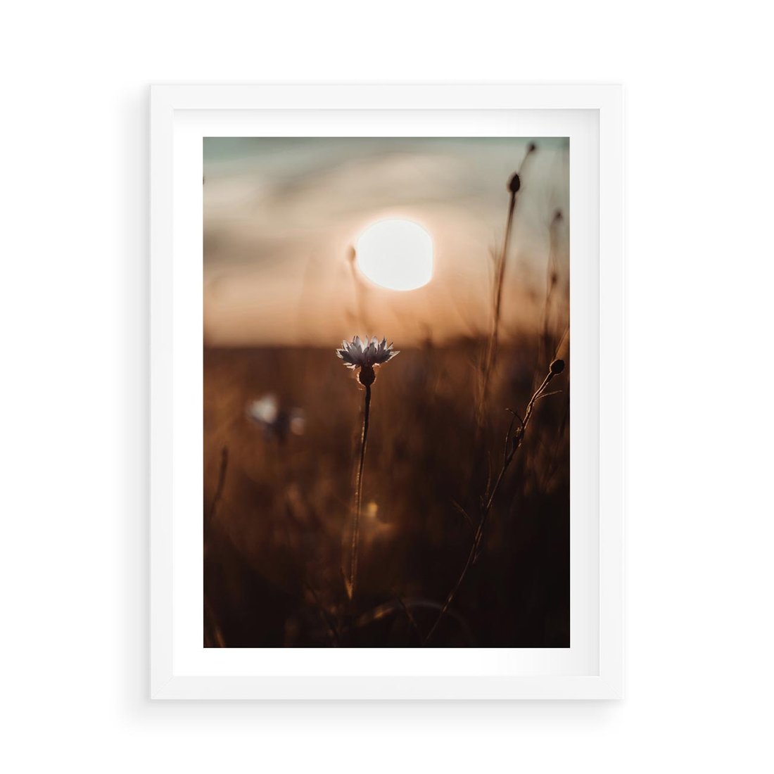 Plakat w ramie 50x70 - Spokój łąki pod zachodem słońca - zachód, słońca - rama biała