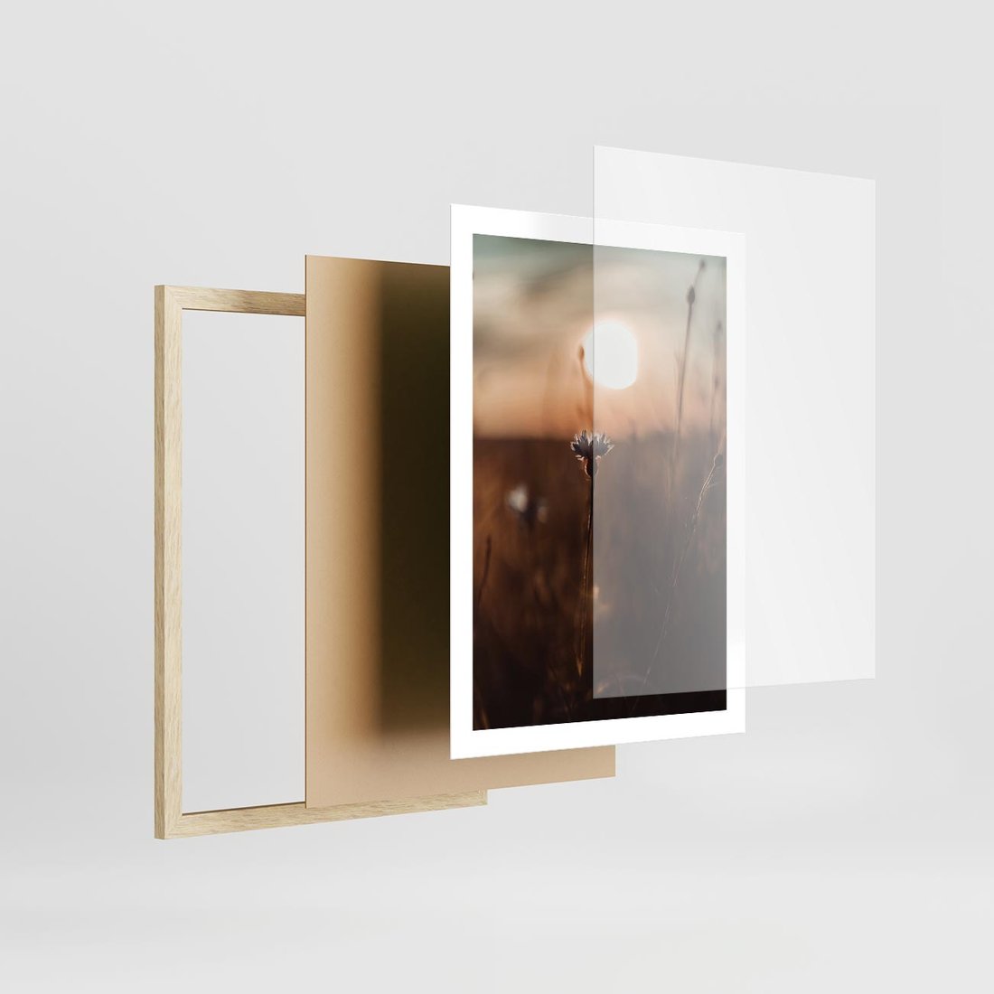 Plakat w ramie 50x70 - Spokój łąki pod zachodem słońca - zachód, słońca - rama drewno