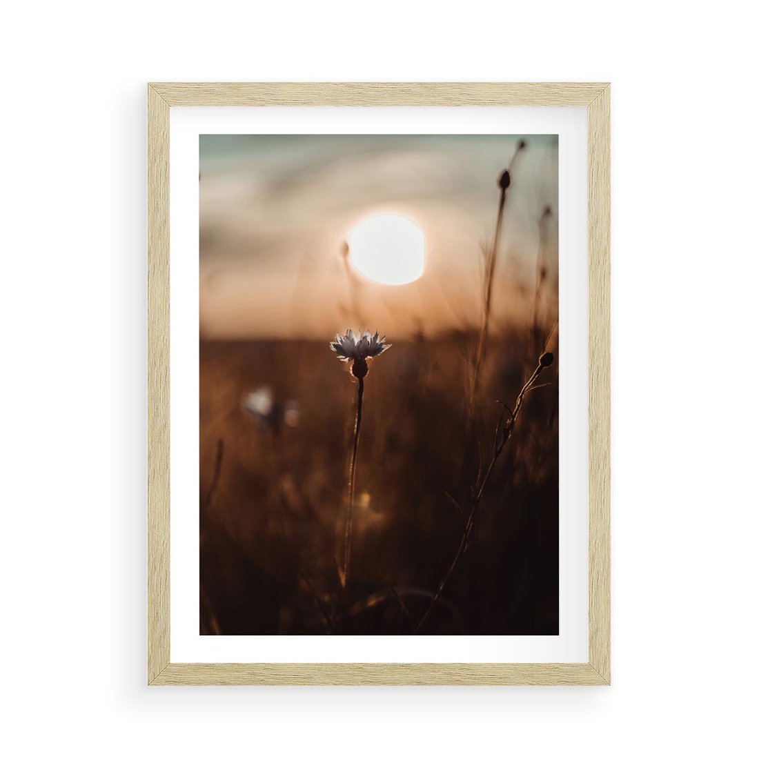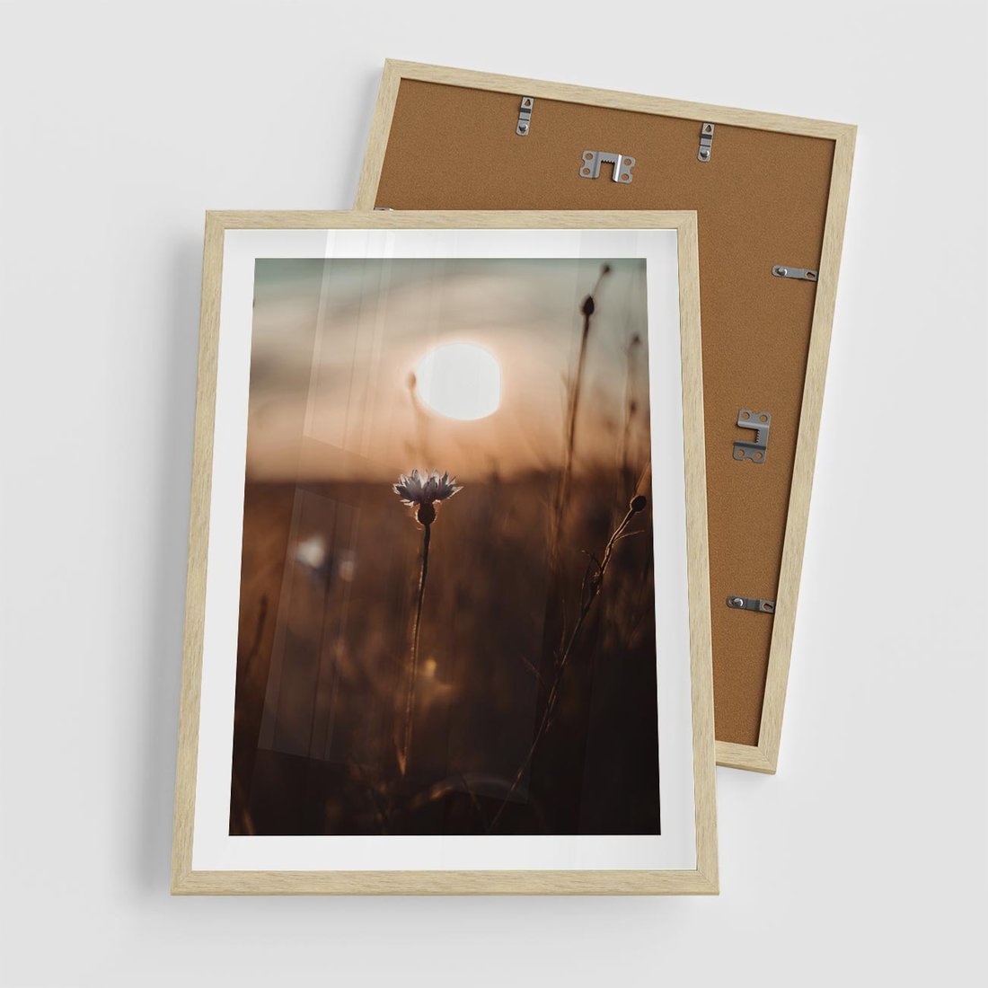 - Plakat w ramie 50x70 - Spokój łąki pod zachodem słońca
