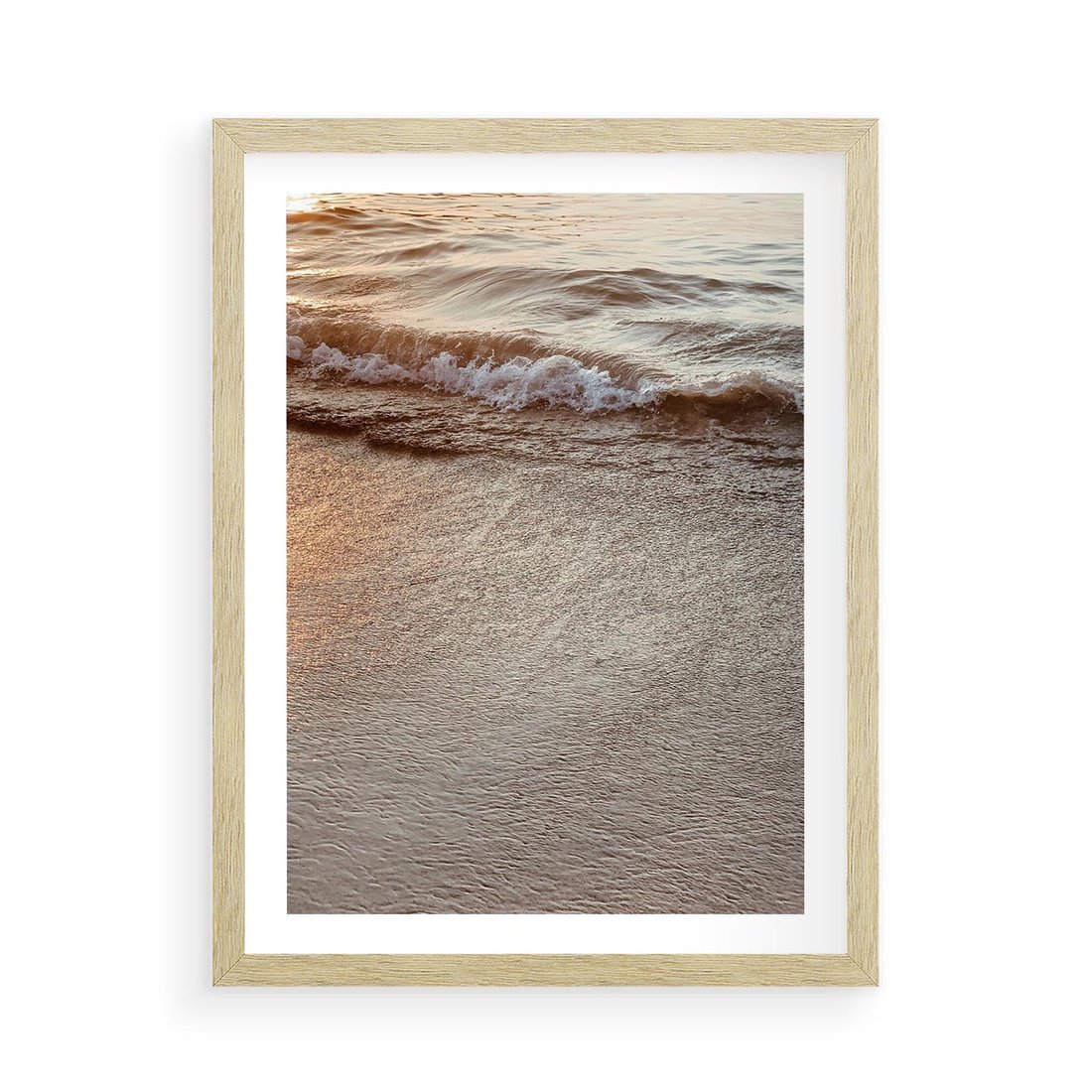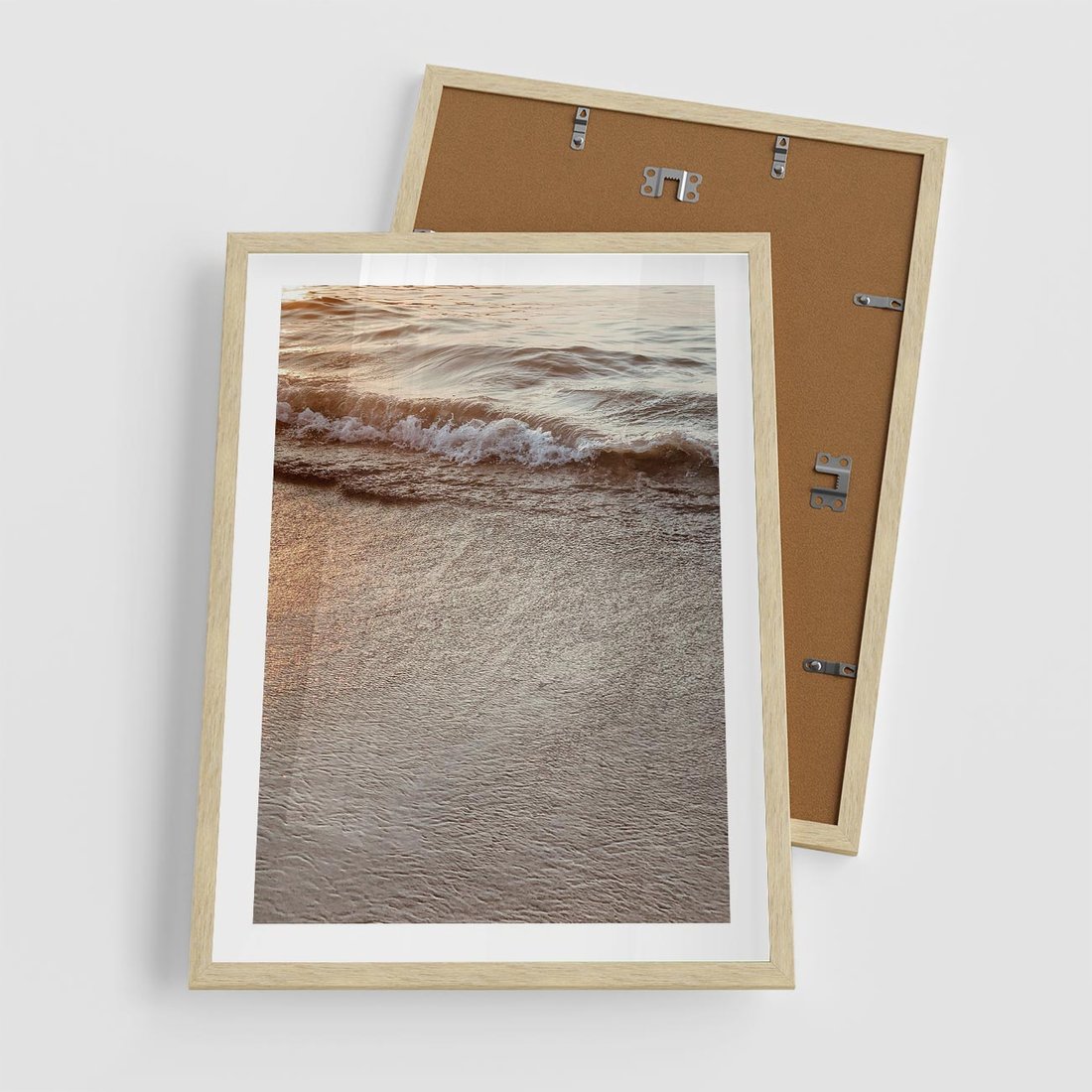 Plakat w ramie 50x70 - Spokój Morza: Fale na Plaży - fale, morze - rama drewno