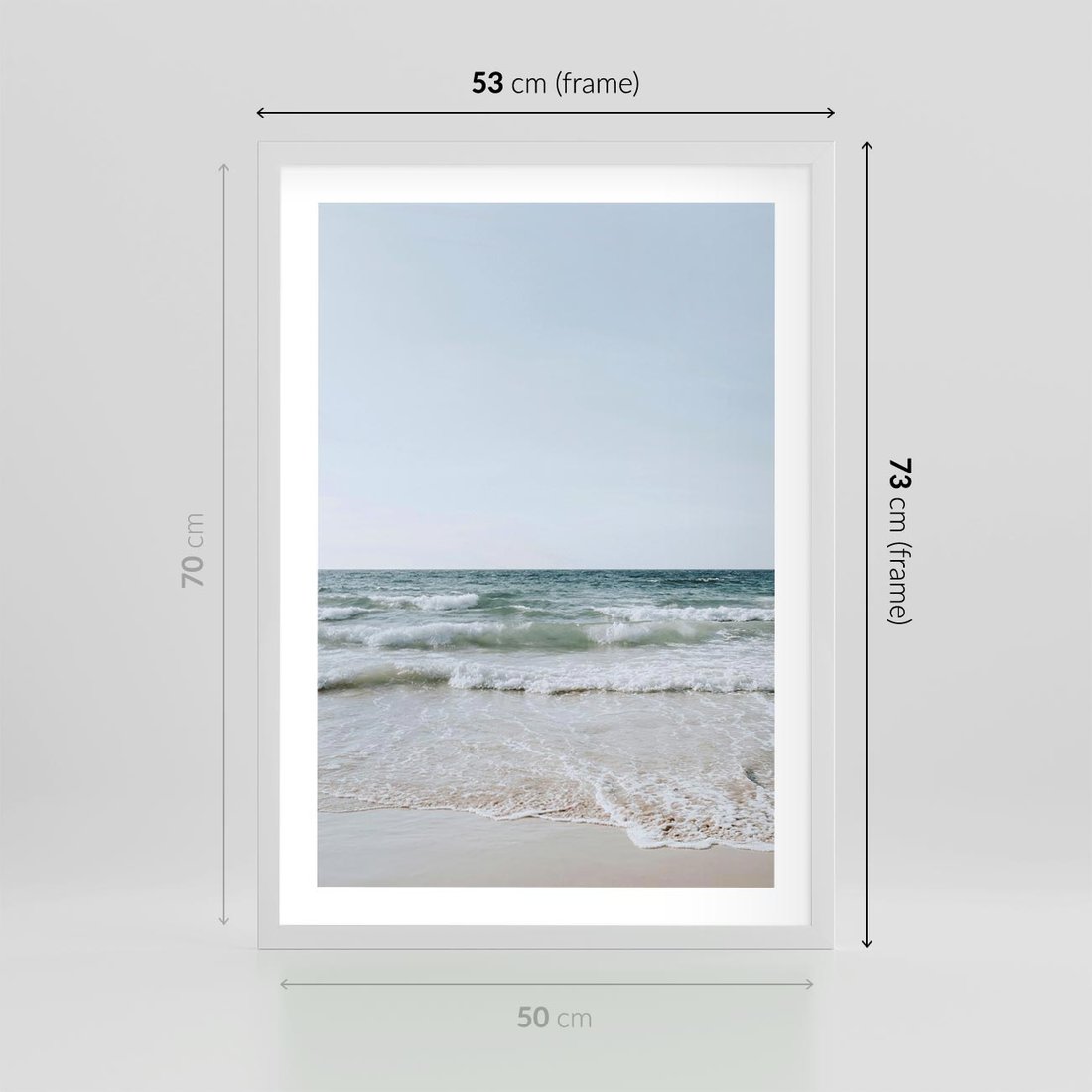 Plakat w ramie 50x70 - Spokój nad Brzegiem - plaża, morze - rama biała