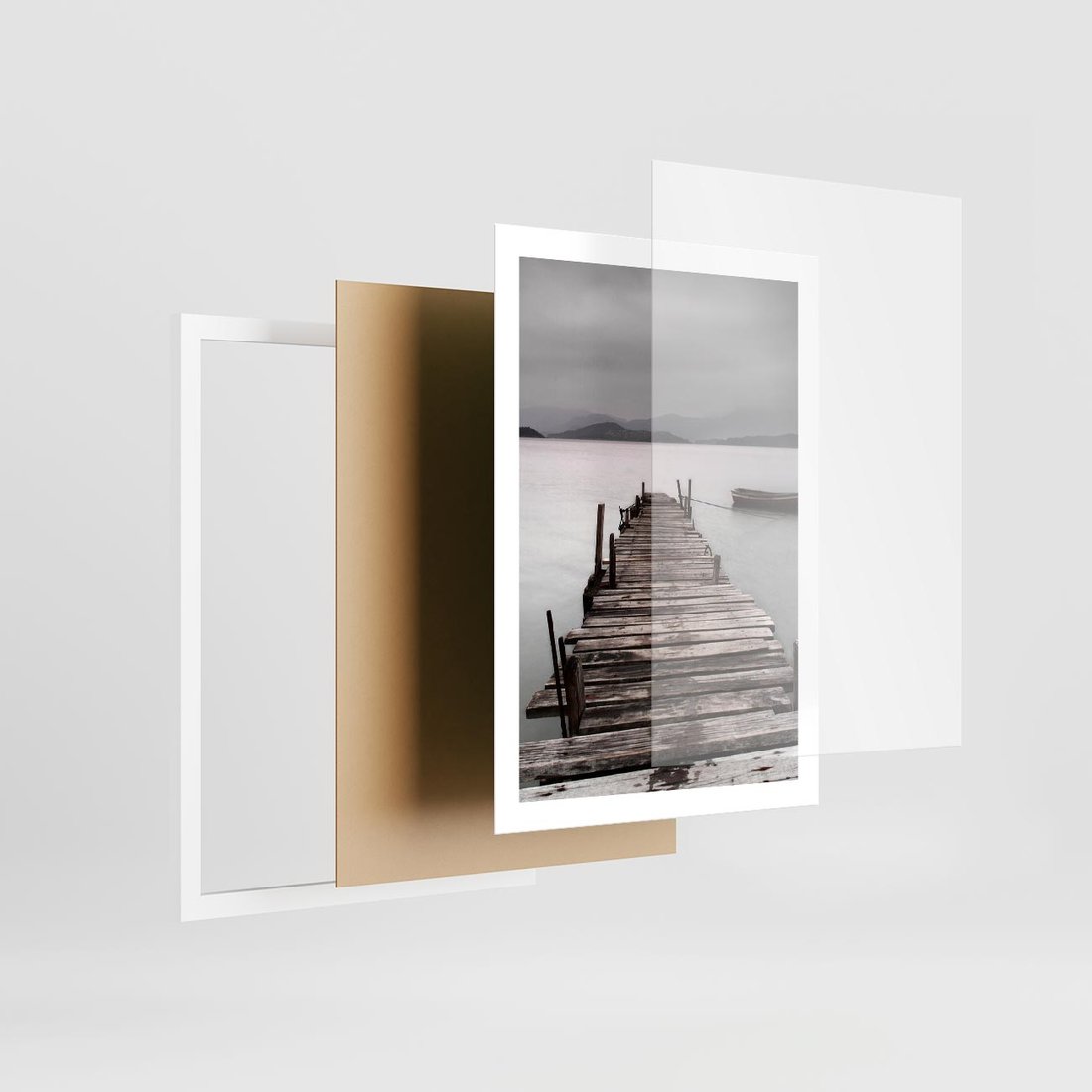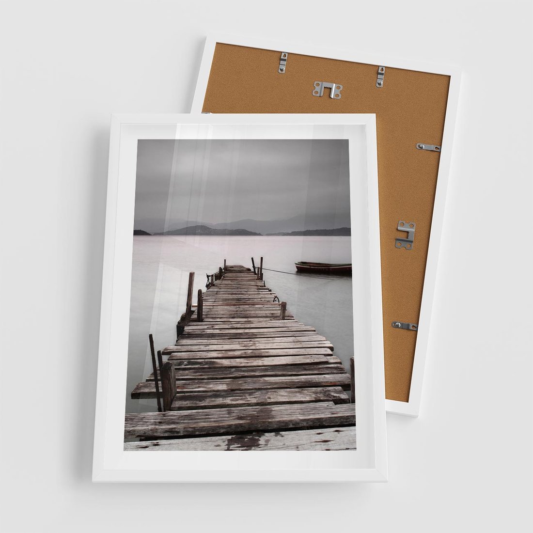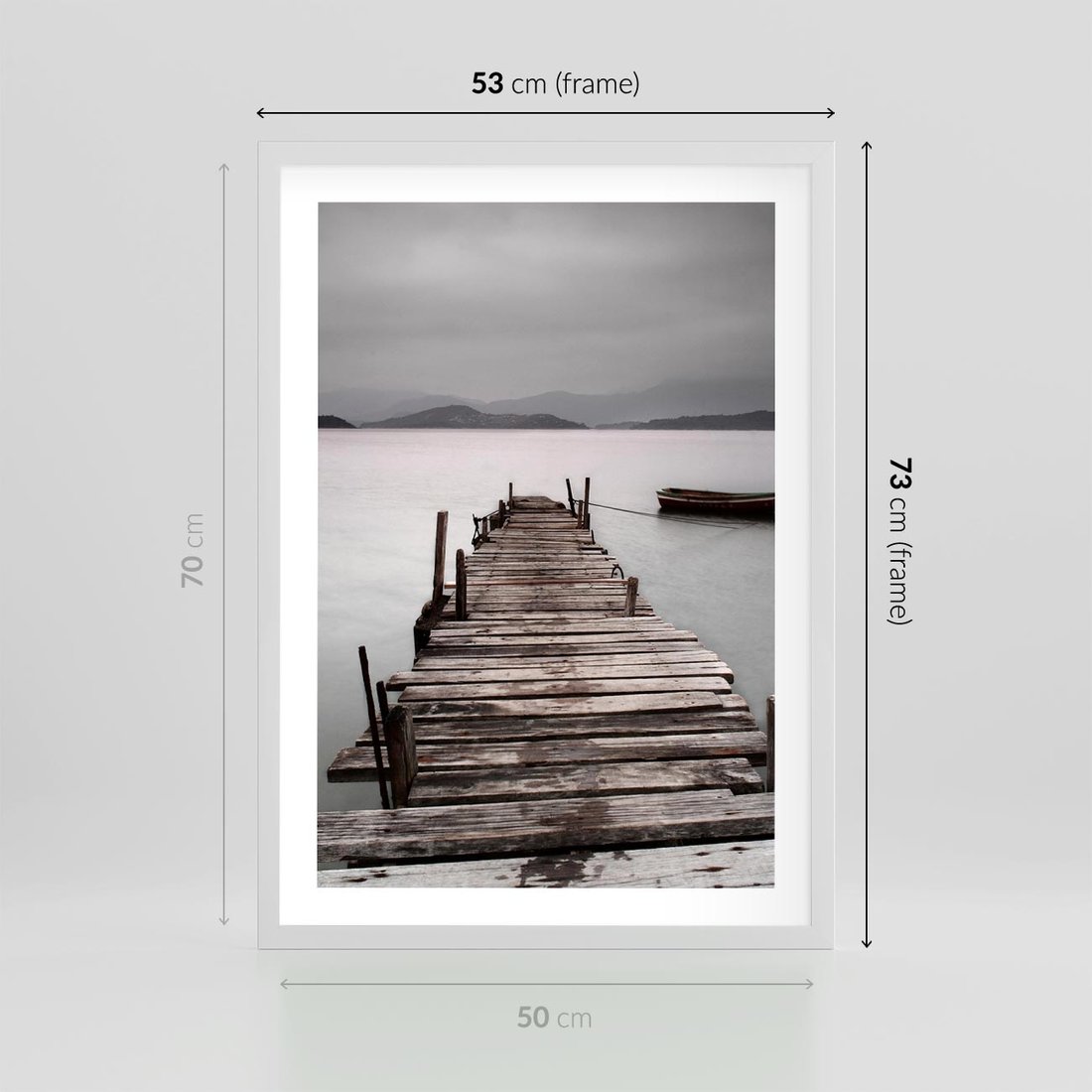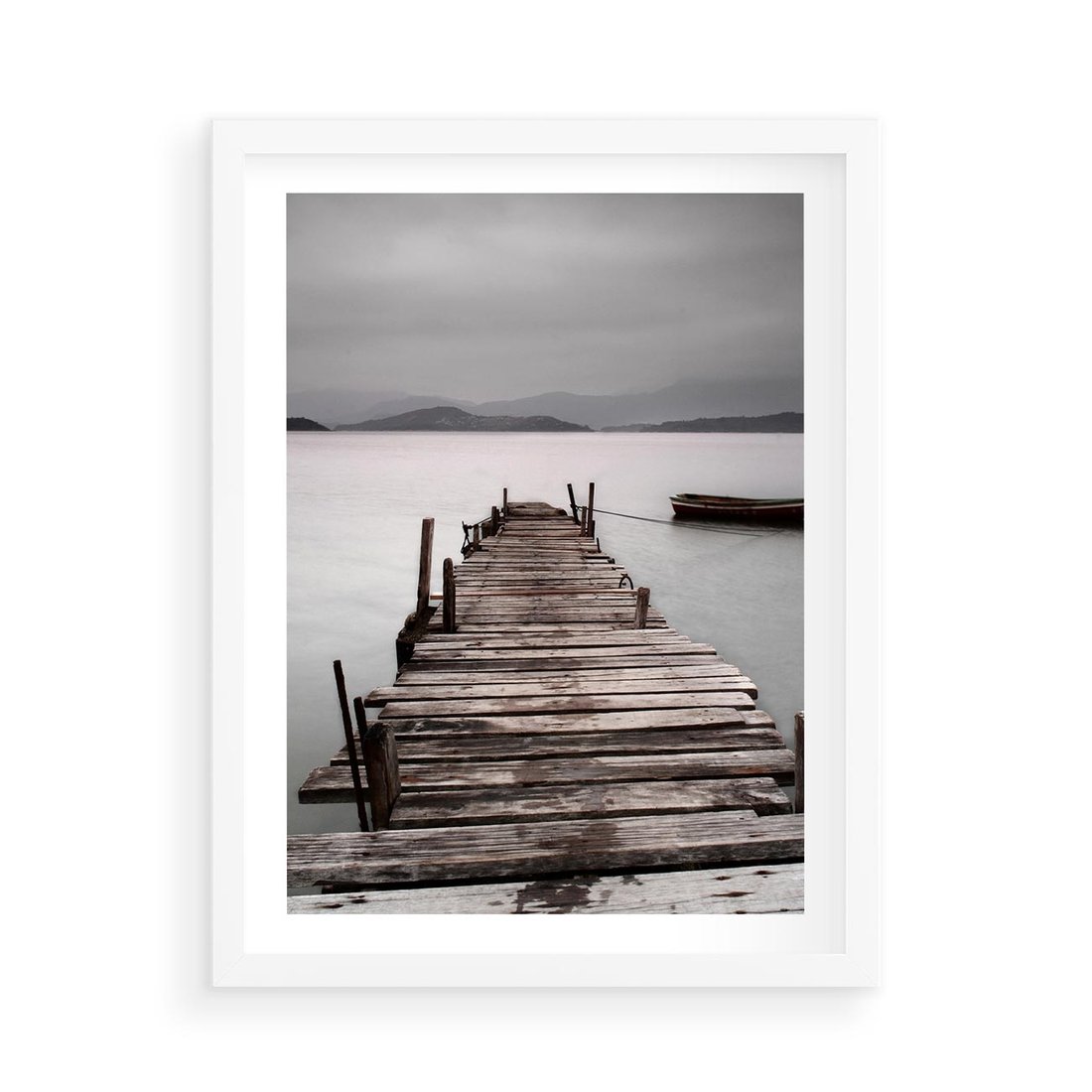 Plakat w ramie 50x70 - Spokój nad Jeziorem - pomost, jezioro - rama biała