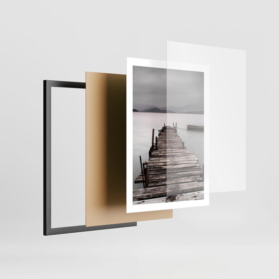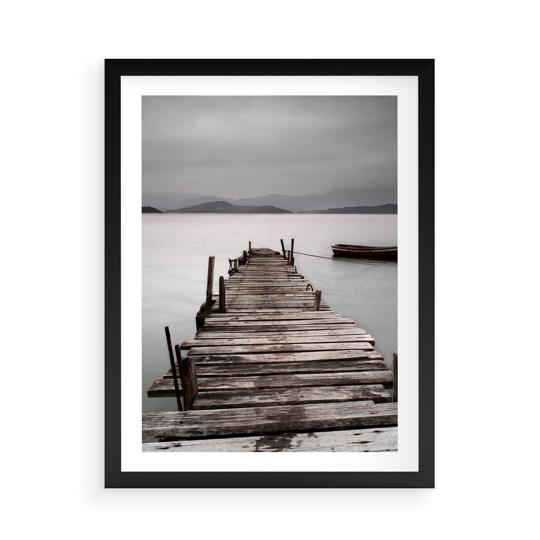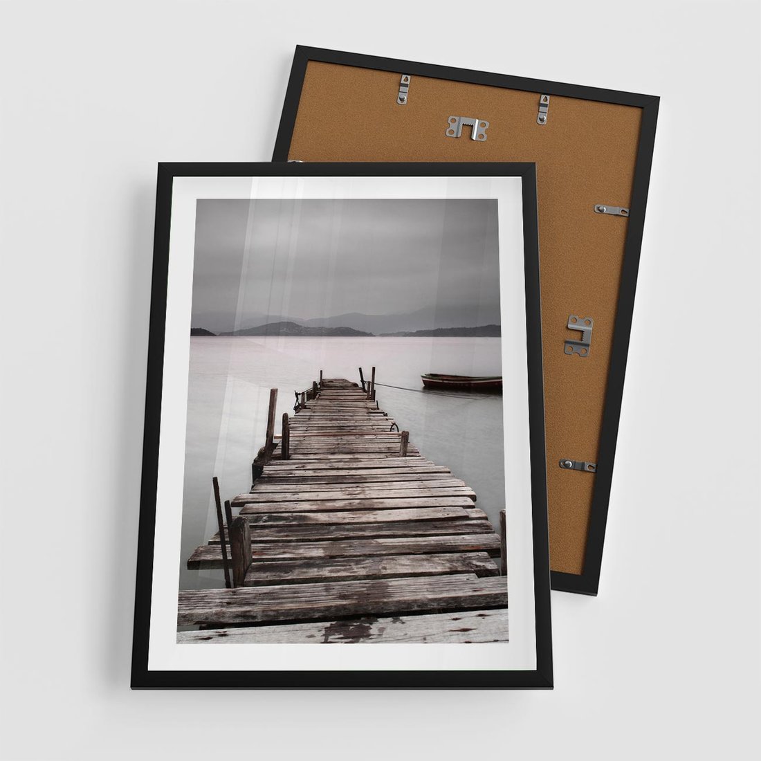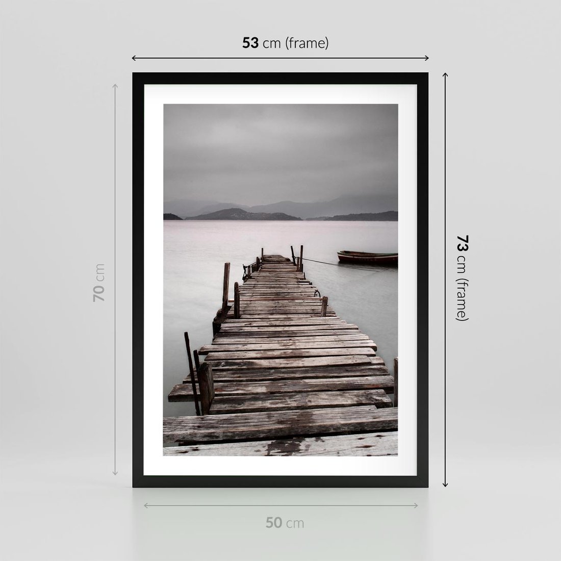 Plakat w ramie 50x70 - Spokój nad Jeziorem - pomost, jezioro - rama czarna