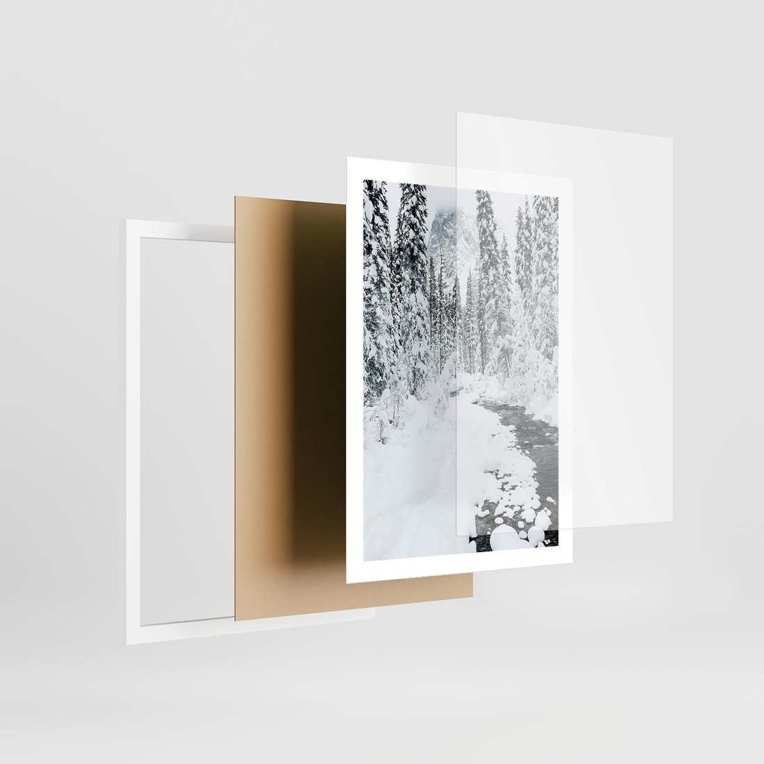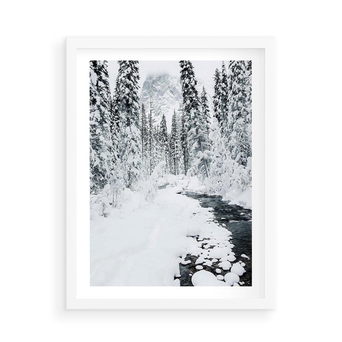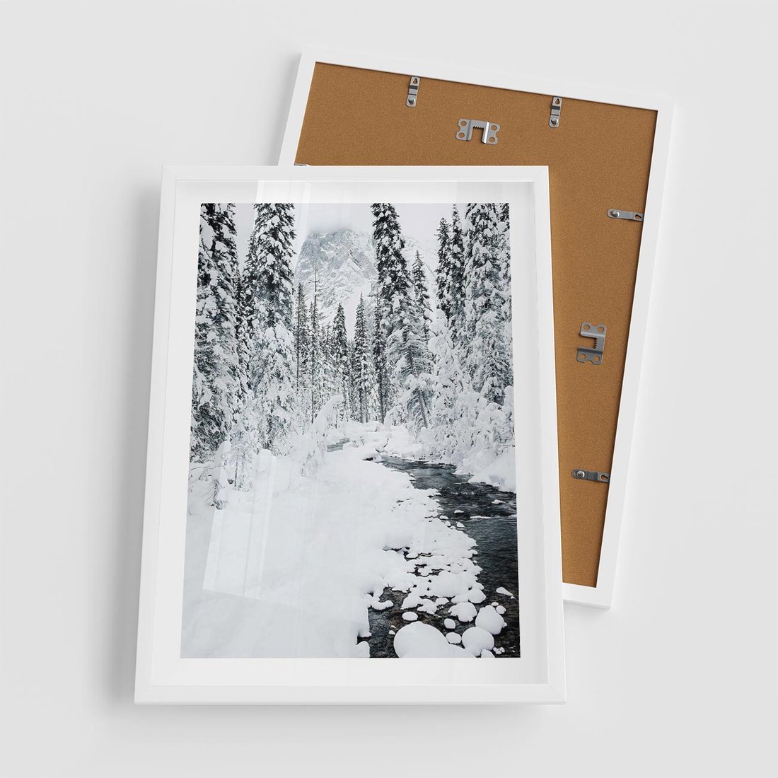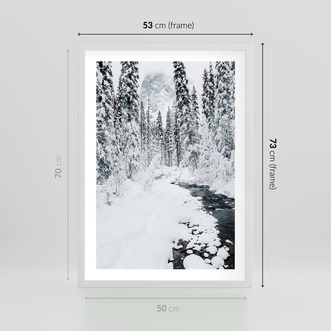 Plakat w ramie 50x70 - Spokój Zimowego Lasu w Górach - zima w lesie, w górach - rama biała