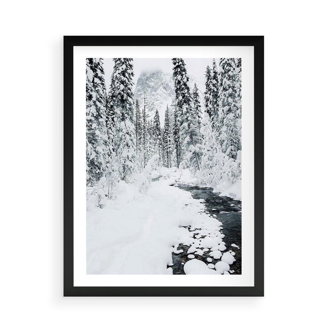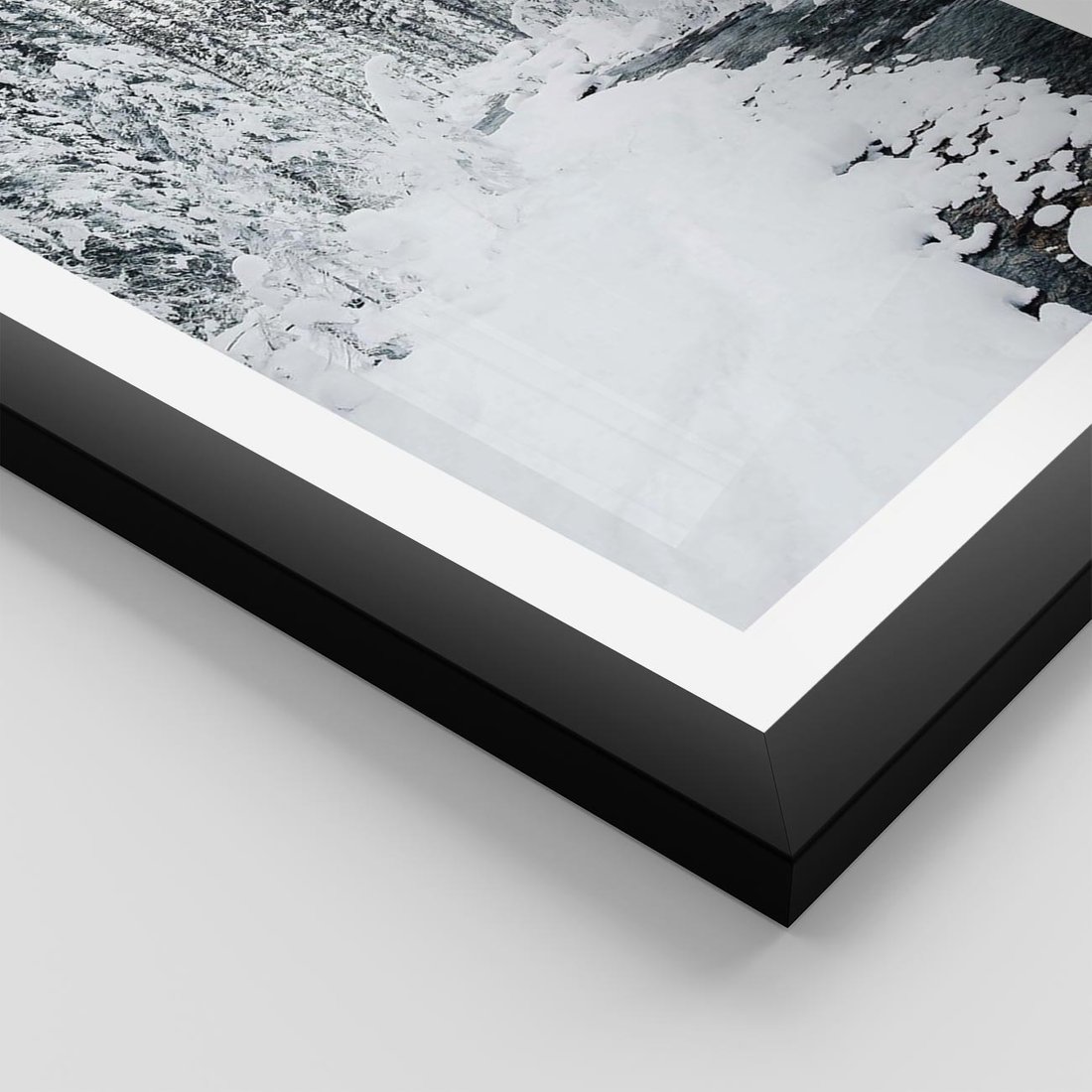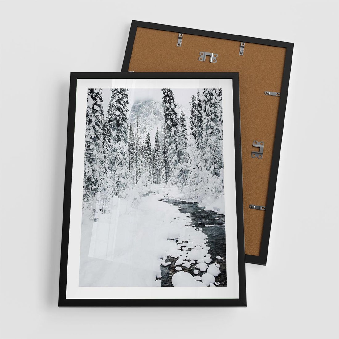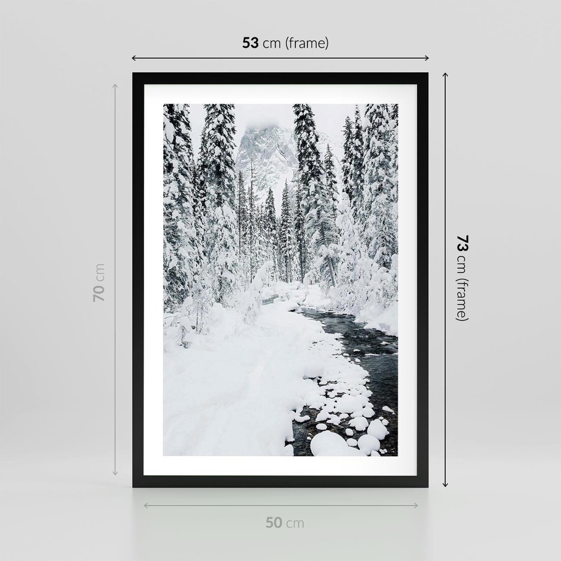 Plakat w ramie 50x70 - Spokój Zimowego Lasu w Górach - zima w lesie, w górach - rama czarna