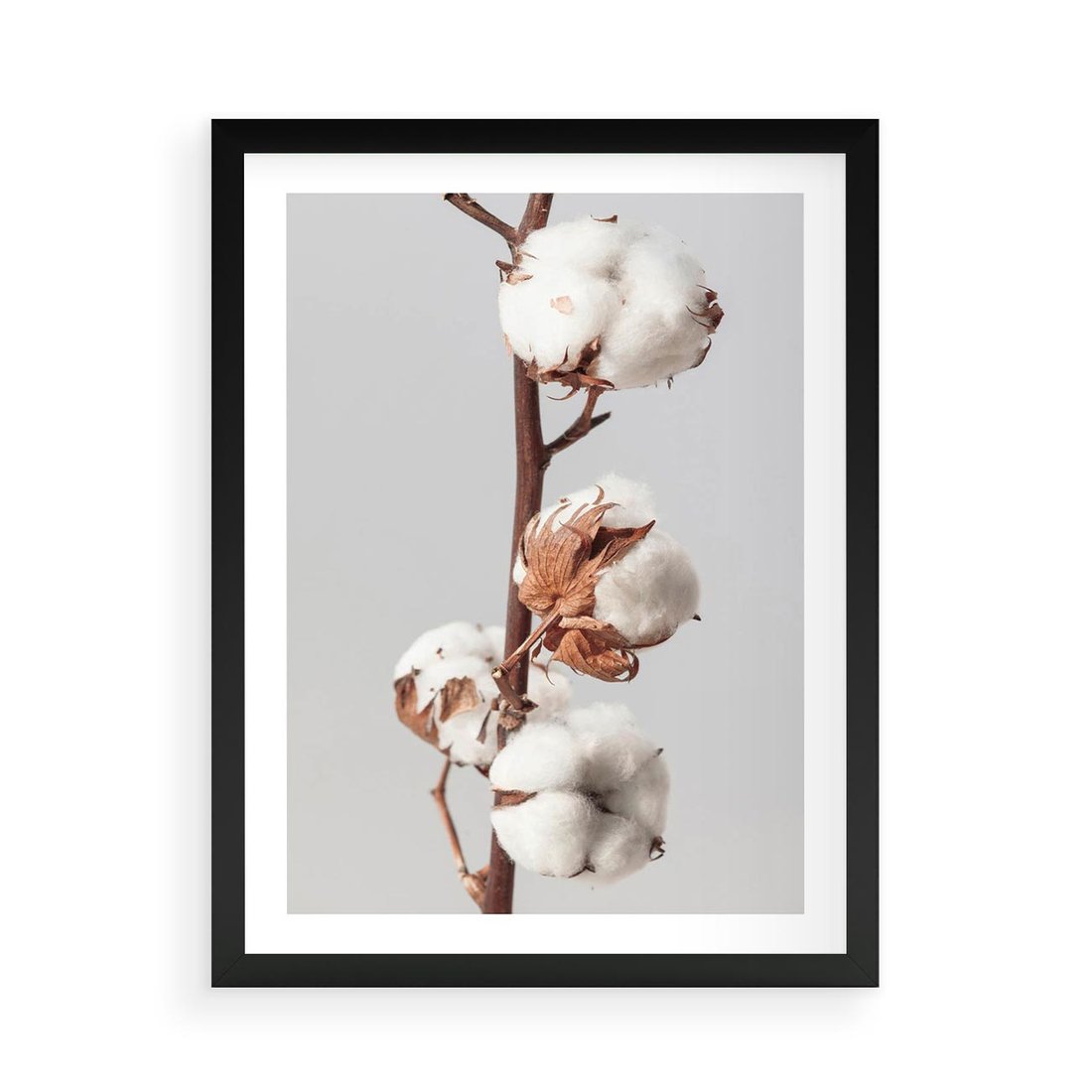 Plakat w ramie 50x70 - Spokojna Gałązka Bawełny - gałązka bawełny, prosta spokojna fotografia - rama czarna