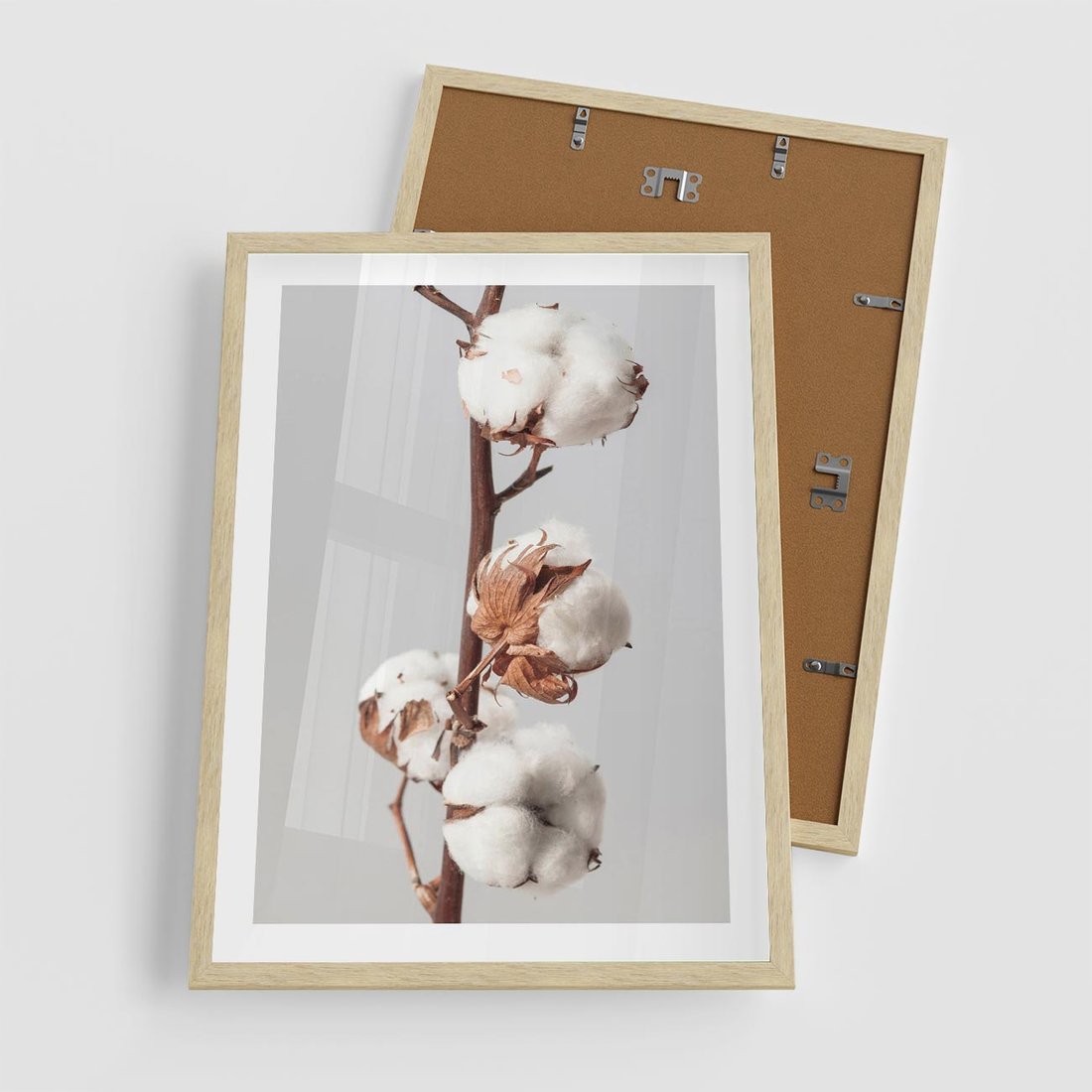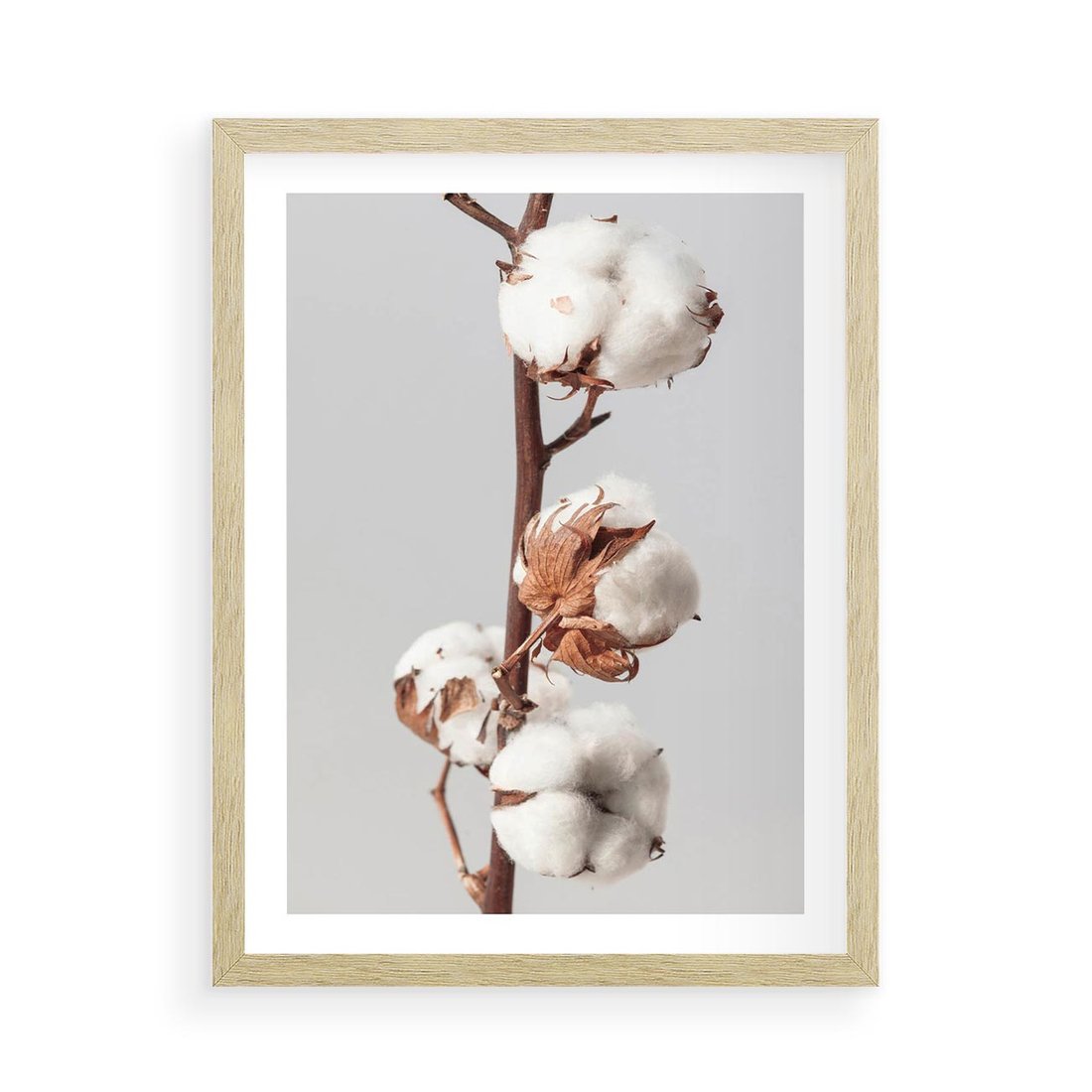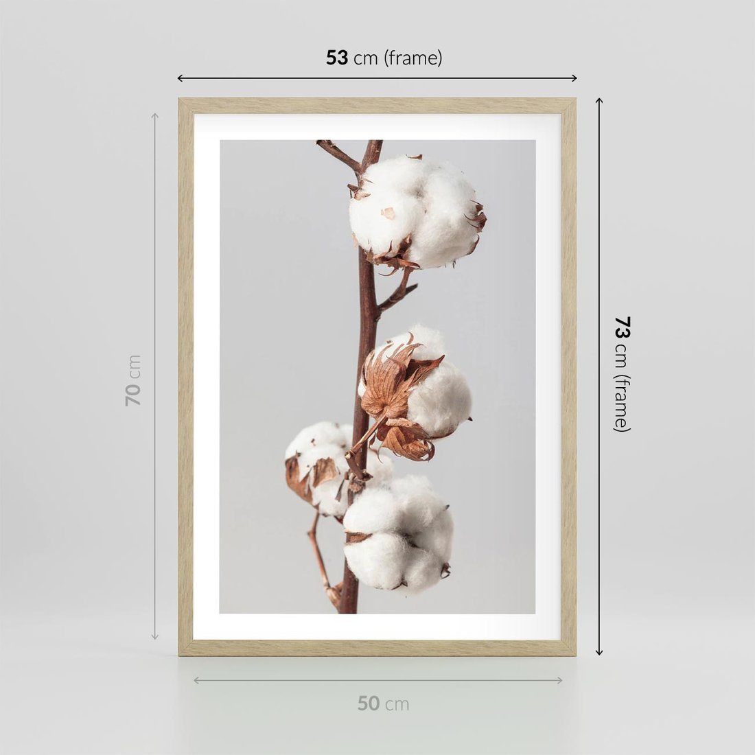 Plakat w ramie 50x70 - Spokojna Gałązka Bawełny - gałązka bawełny, prosta spokojna fotografia - rama drewno