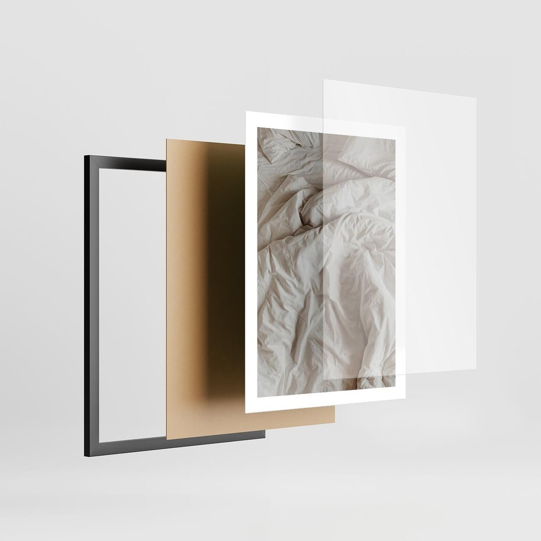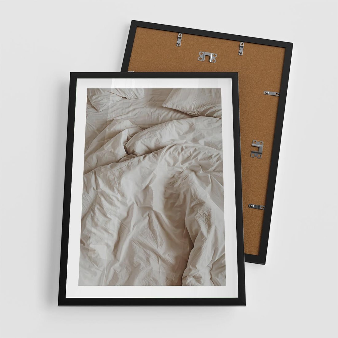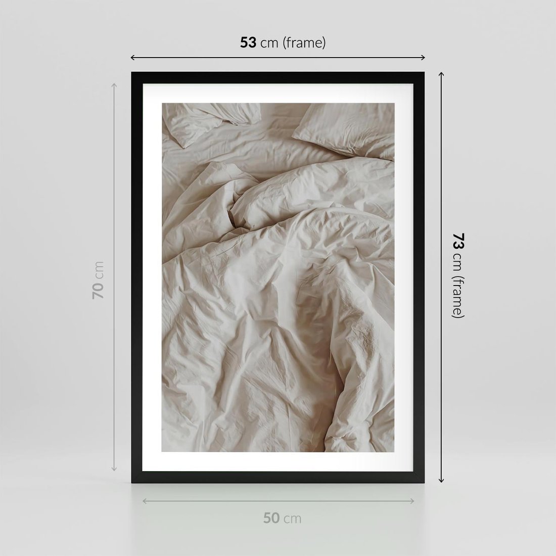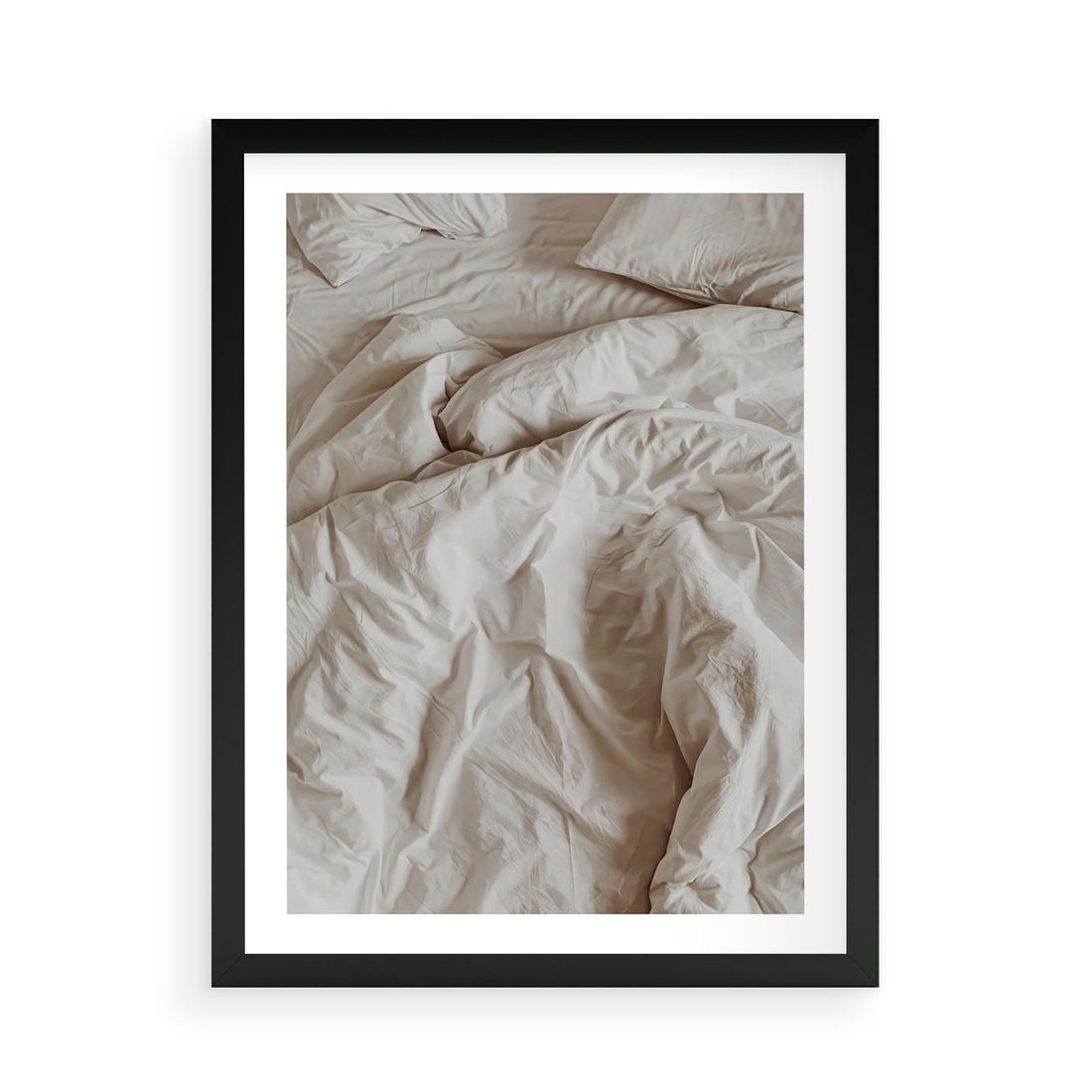 Plakat w ramie 50x70 - Spokojna Noc - biała pościel, zdjęcie do sypialni - rama czarna