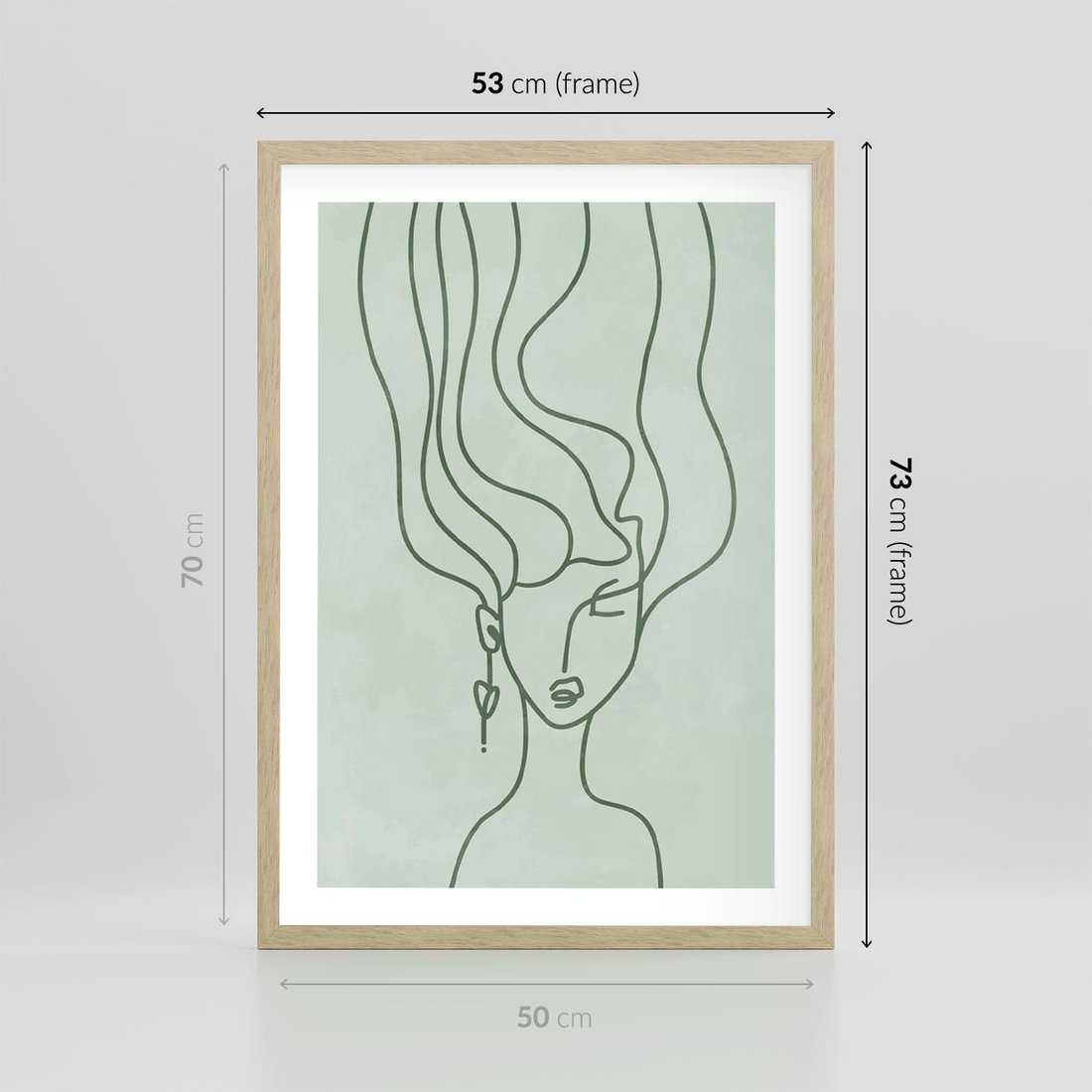 Plakat w ramie 50x70 - Spokojne Objęcia Natury - abstrakcja, zielony szkic - rama drewno