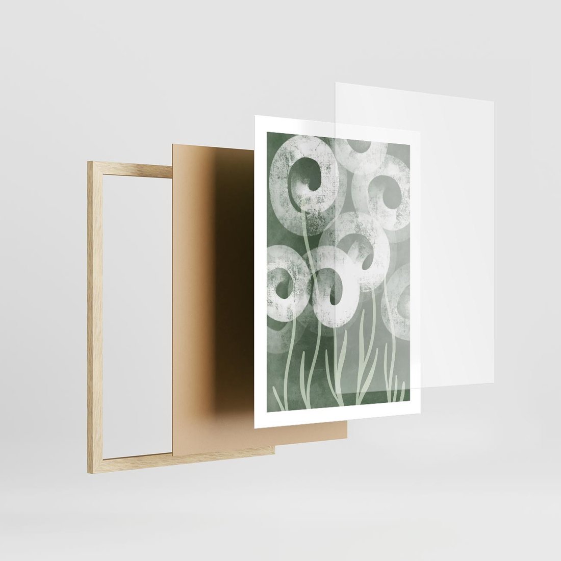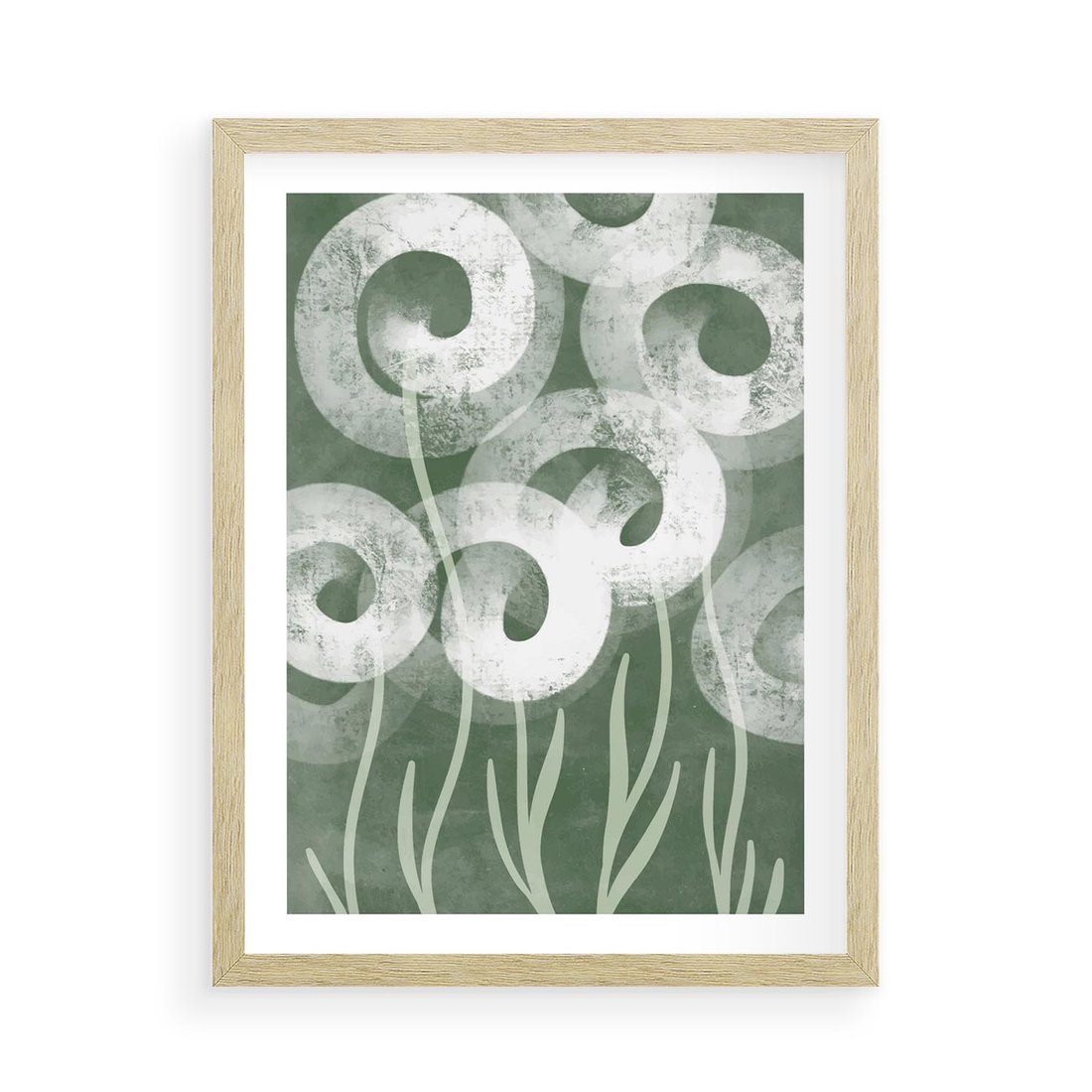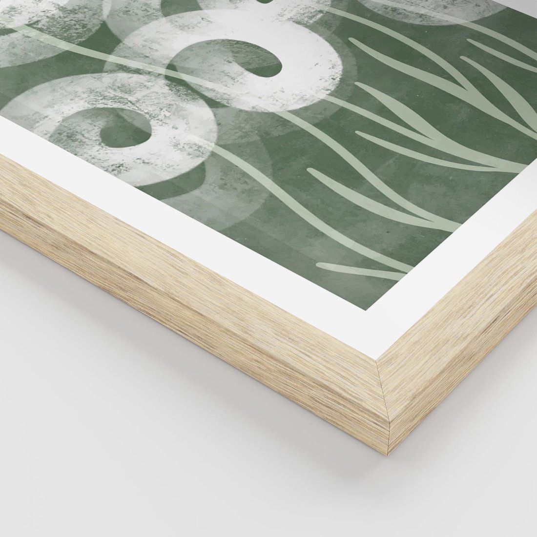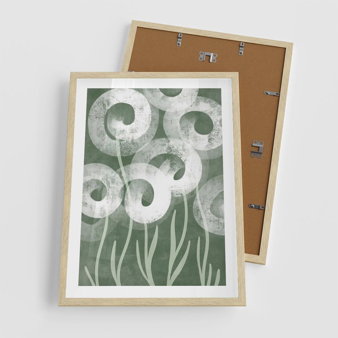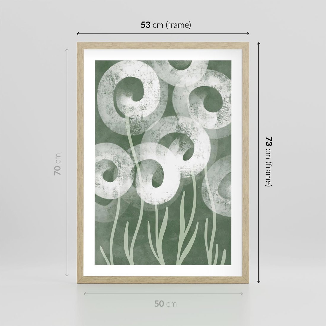 Plakat w ramie 50x70 - Spokojne Plamy Natury - zielony plakat, roślinne motywy - rama drewno