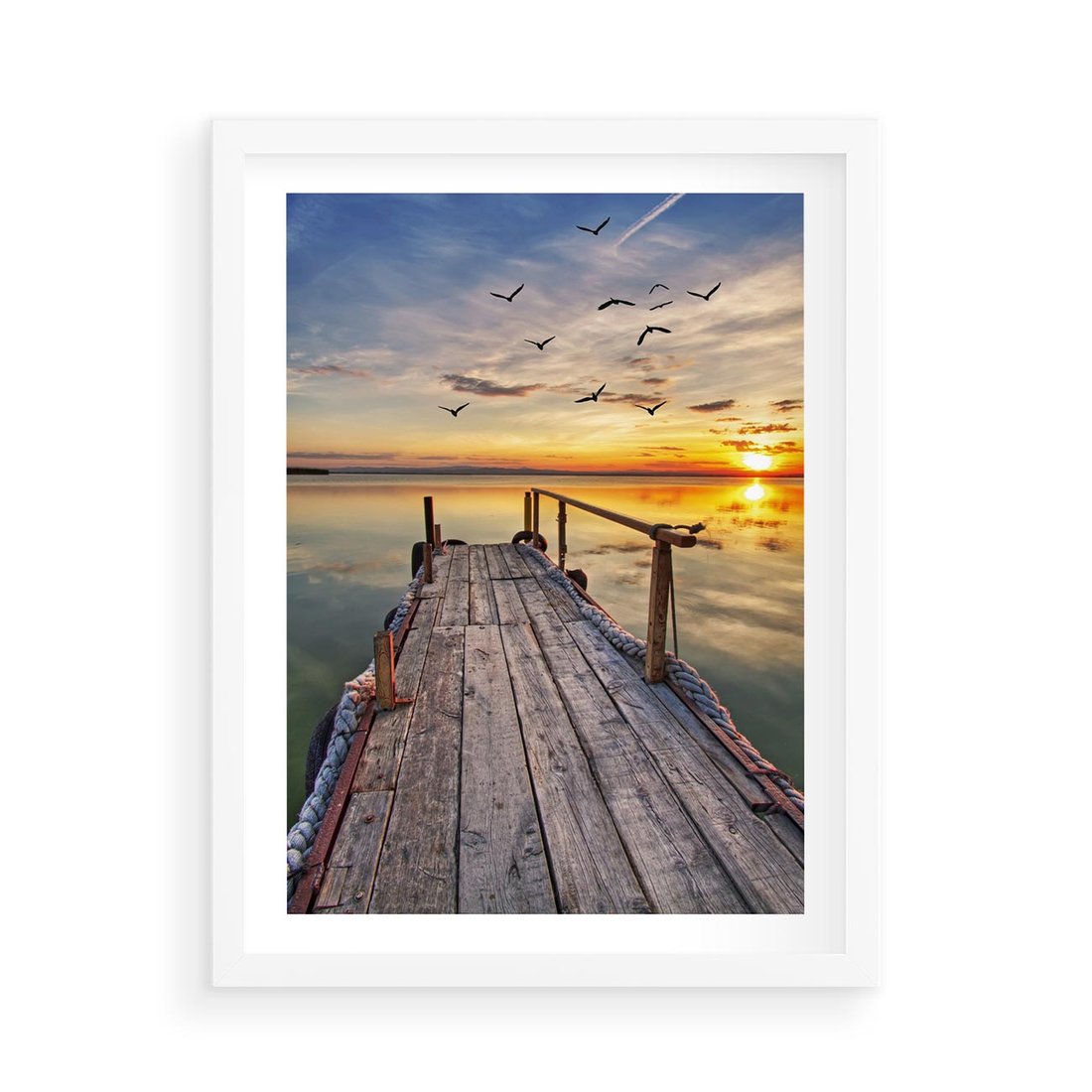 Plakat w ramie 50x70 - Spokojny pomost nad jeziorem - pomost, jezioro - rama biała