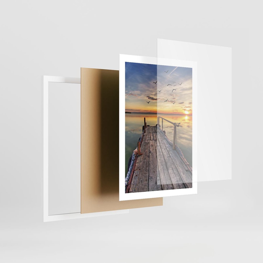 Przenieś się w sielankowy krajobraz nad jeziorem dzięki temu uroczemu obrazowi przedstawiającemu spokojny pomost. Spokój wody, delikatne odbicia i błękitne niebo tworzą harmonijną aurę. Ta kompozycja dodaje relaksu i harmonii, idealna dla osób pragnących wprowadzić do swojego domu odczucie ciszy i spokoju nad jeziorem.