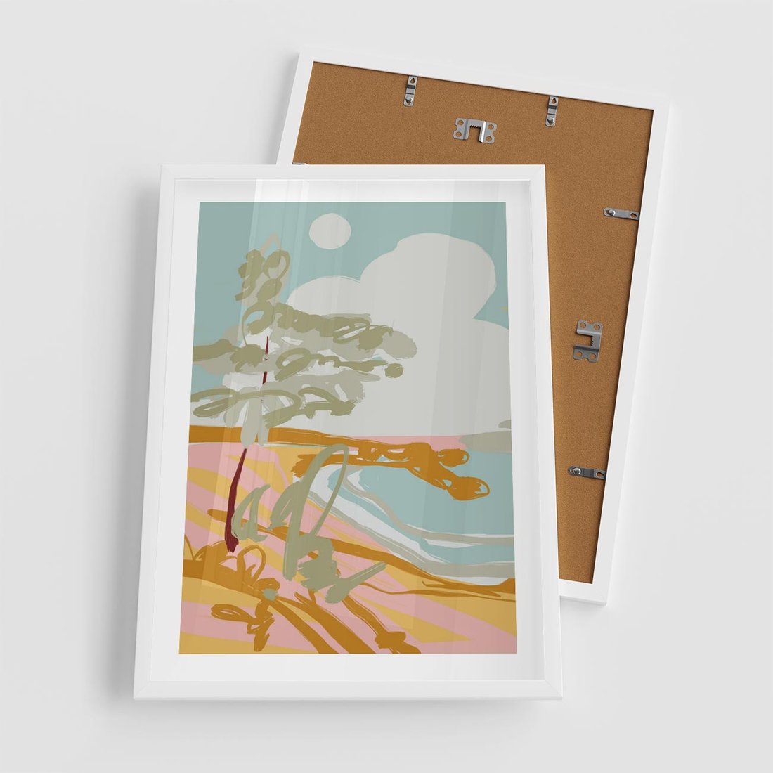Plakat w ramie 50x70 - Spokojny Wiatr - pastelowy krajobraz, nowoczesny plakat - rama biała
