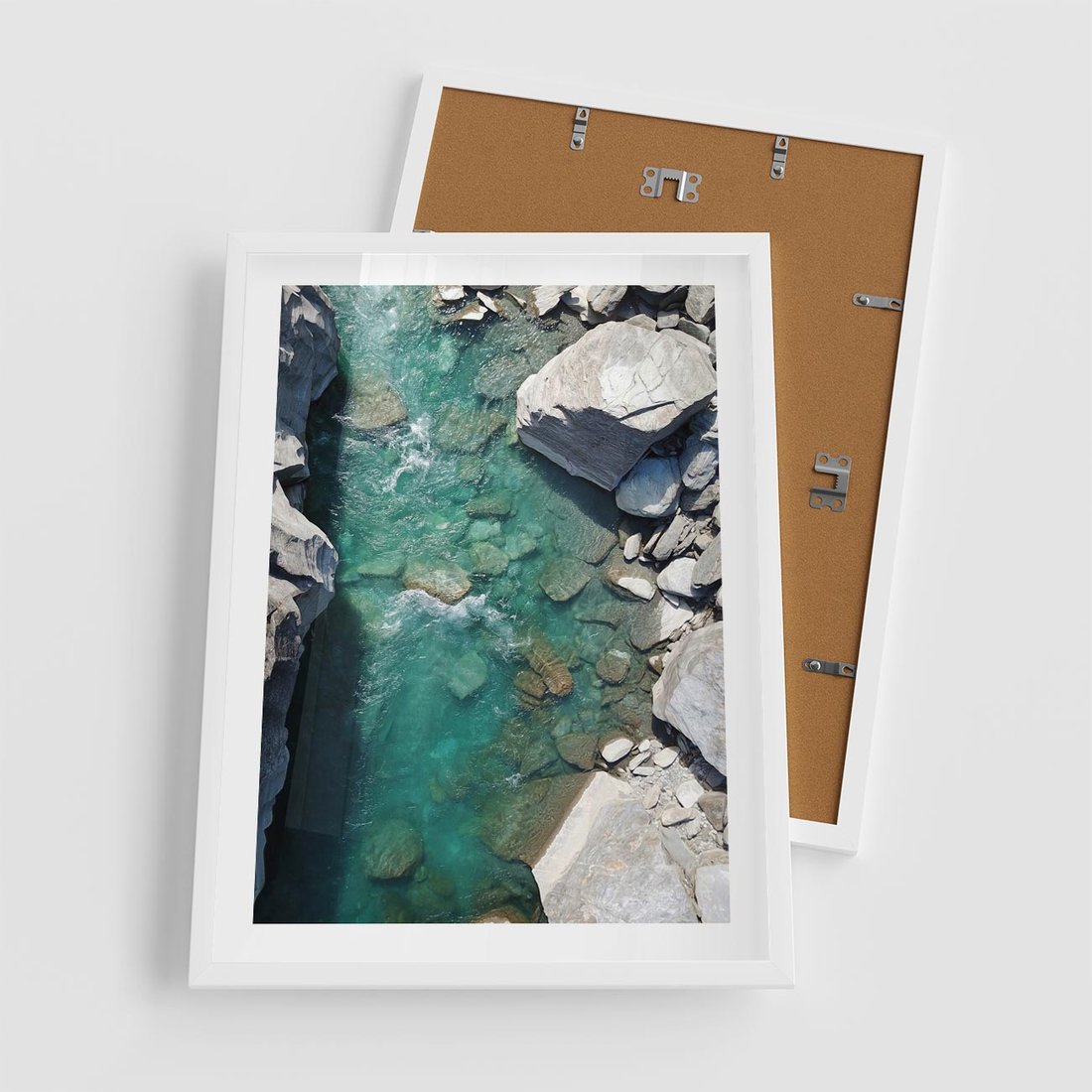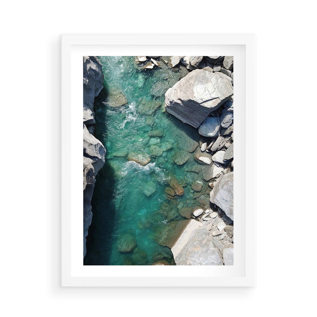 Plakat w ramie 50x70 - Spotkanie natury i siły - rzeka, skały - rama biała