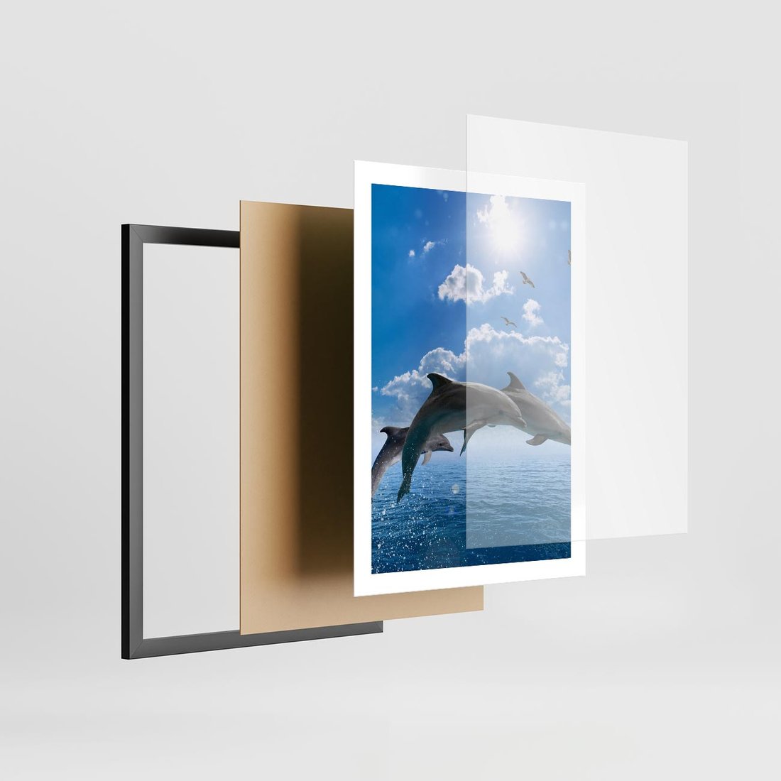 Plakat w ramie 50x70 - Spotkanie z naturą - morze, delfiny - rama czarna