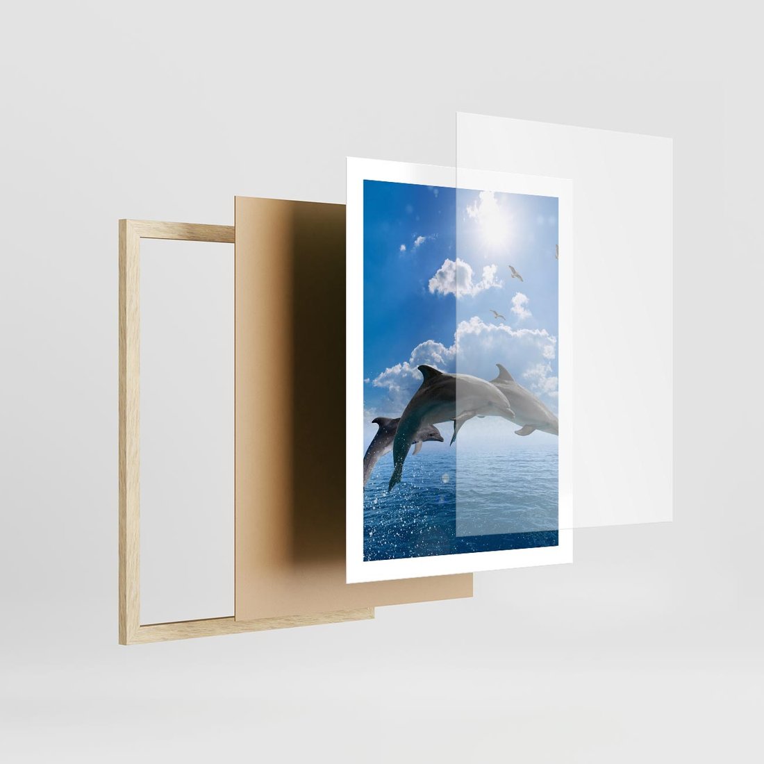 Plakat w ramie 50x70 - Spotkanie z naturą - morze, delfiny - rama drewno