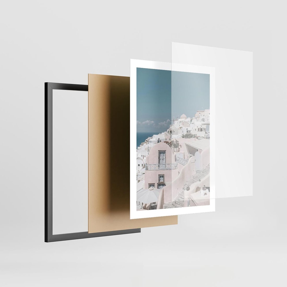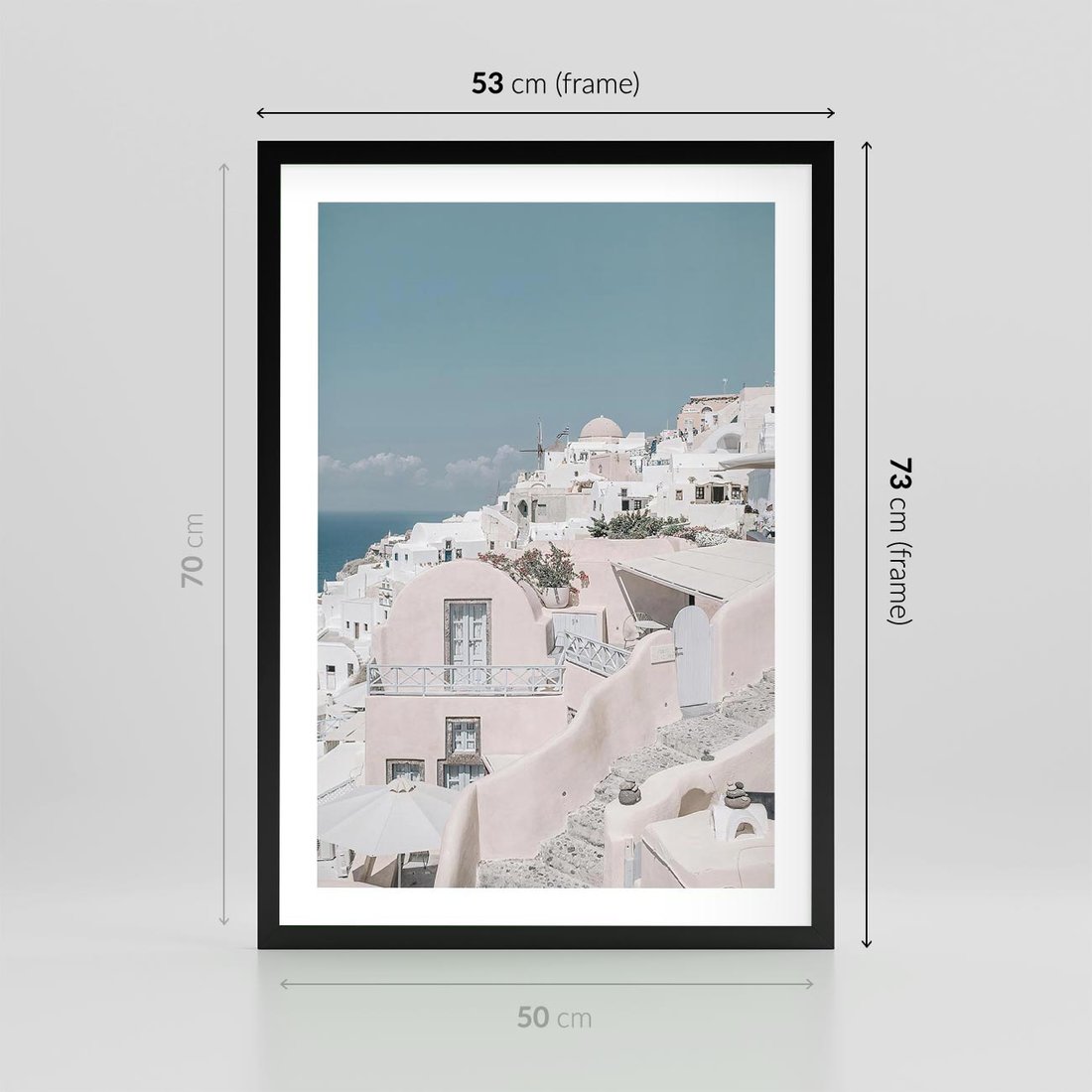 Plakat w ramie 50x70 - Śródziemnomorski Urok - zdjęcie Santorini, białe budynki - rama czarna