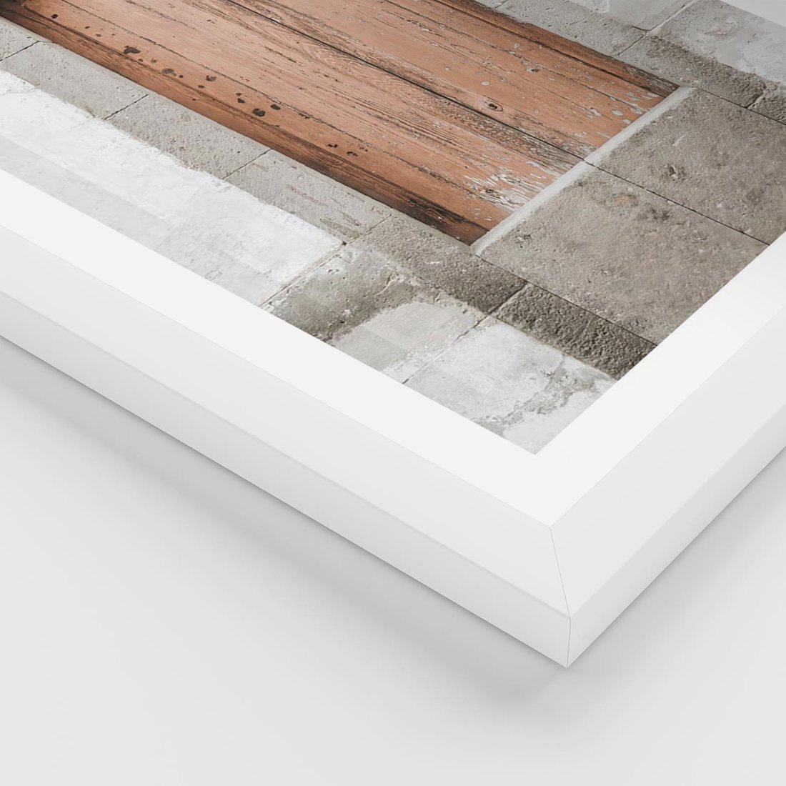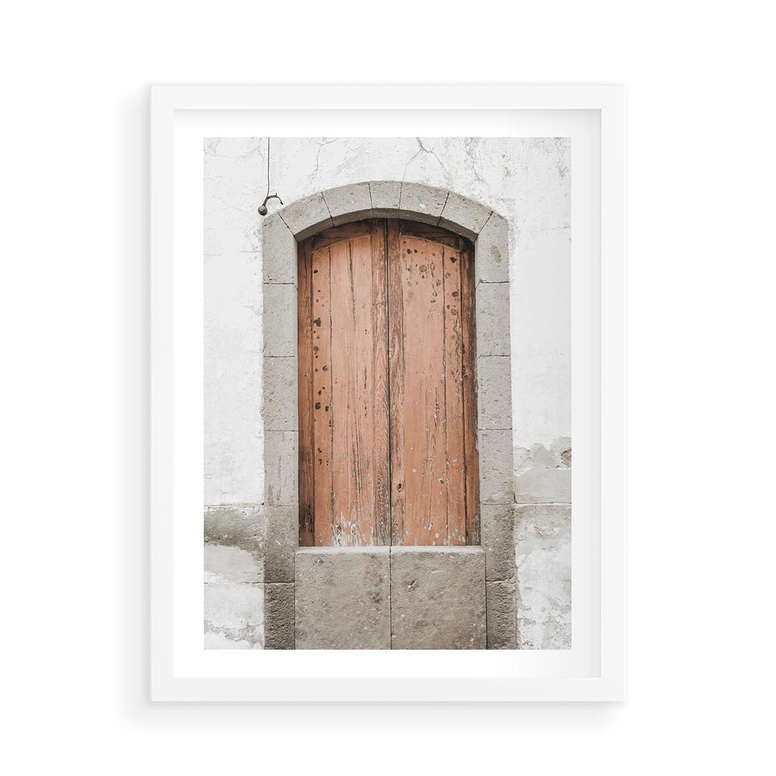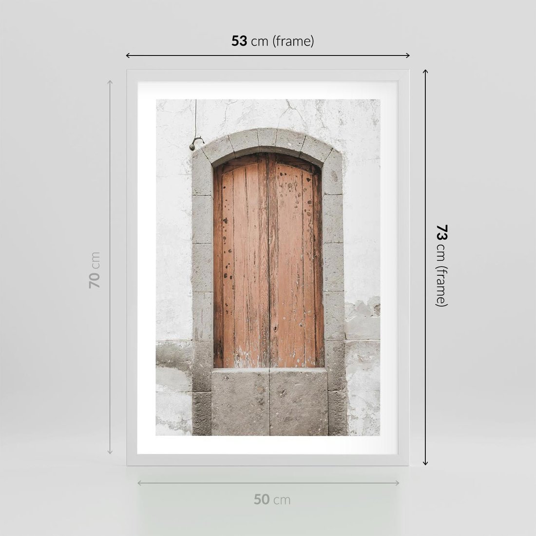 Plakat w ramie 50x70 - Śródziemnomorskie Drzwi Czasu - fotografia starych drzwi, śródziemnomorska architektura - rama biała