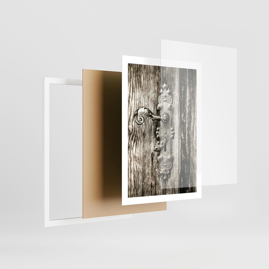 - Plakat w ramie 50x70 - Stare Drzwi z Ozdobną Klamką