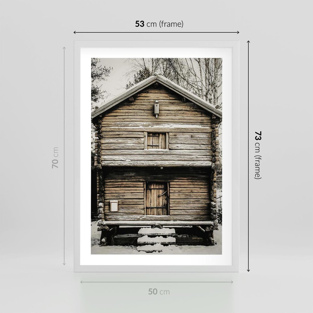 • Plakat w ramie 50x70 - Stary Drewniany Dom w Śniegu