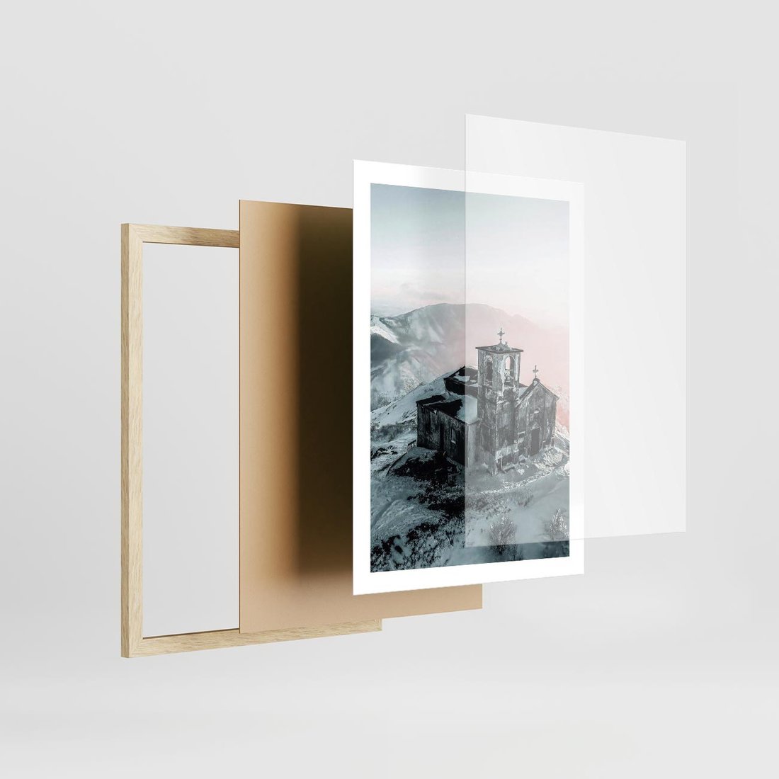Plakat w ramie 50x70 - Stary Kościół w Górach - stary kościół, ruiny - rama drewno