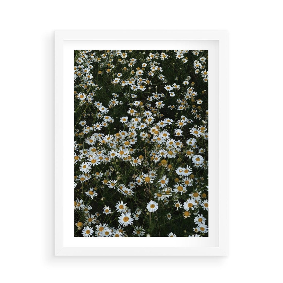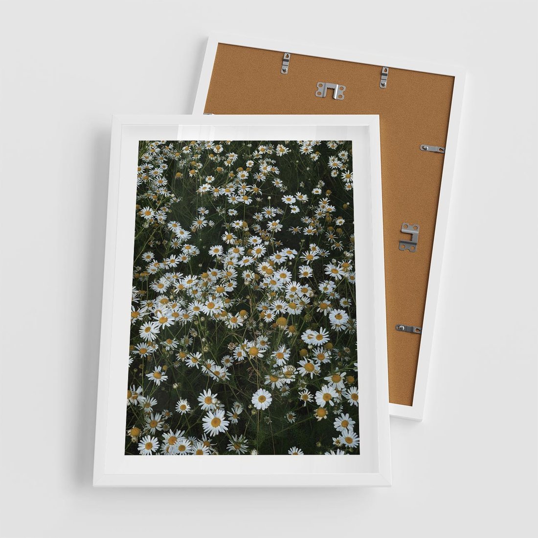 Plakat w ramie 50x70 - Stokrotkowa Idylla na Łące - łąka, stokrotki - rama biała