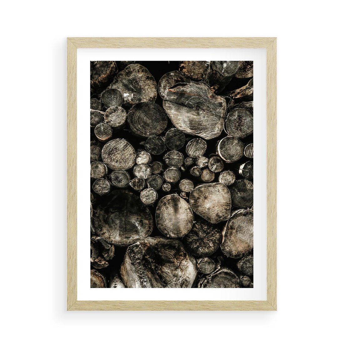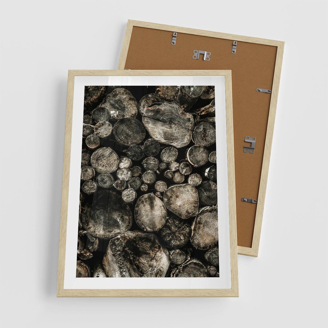 Plakat w ramie 50x70 - Stos Drewna - kłody drewna, pociete drweno - rama drewno