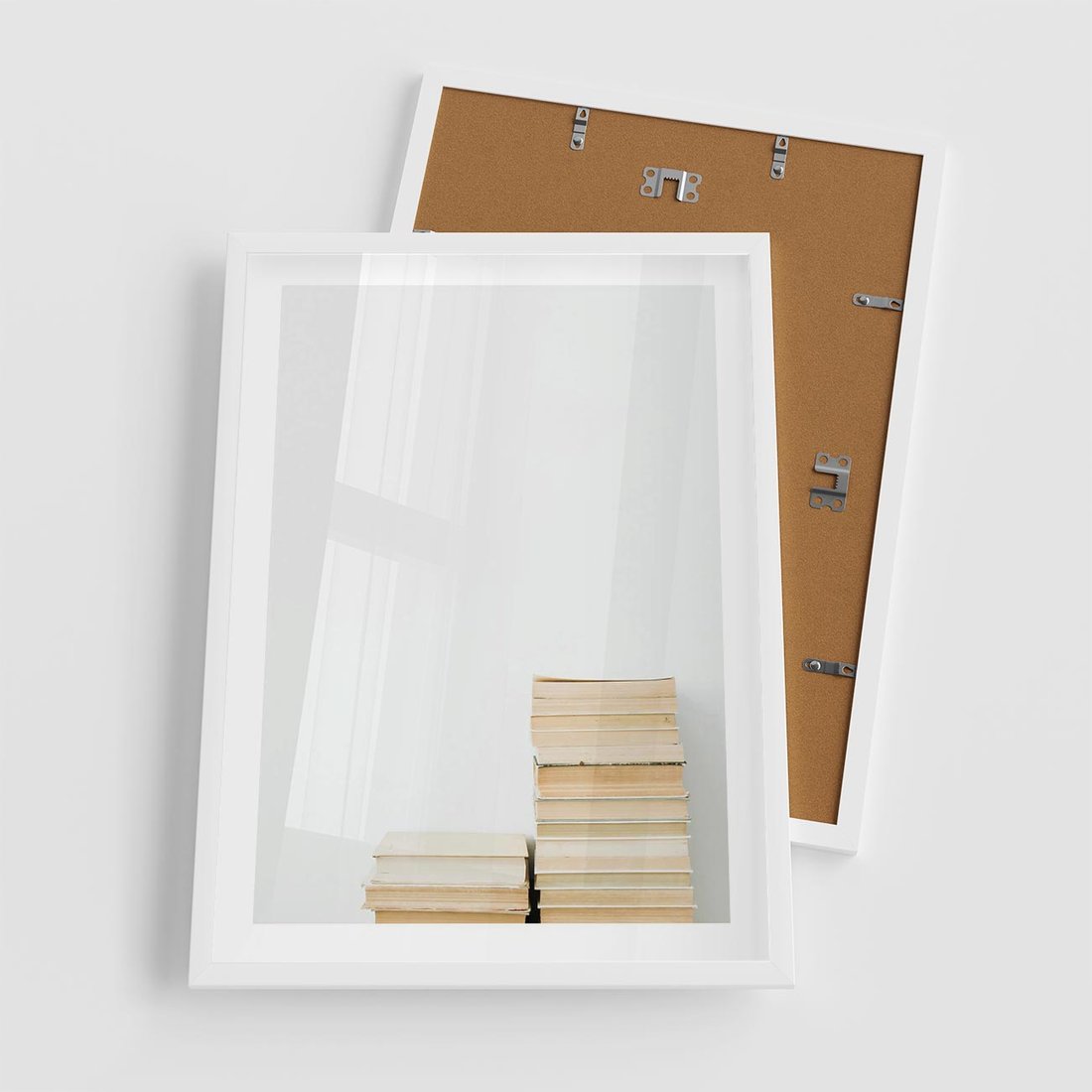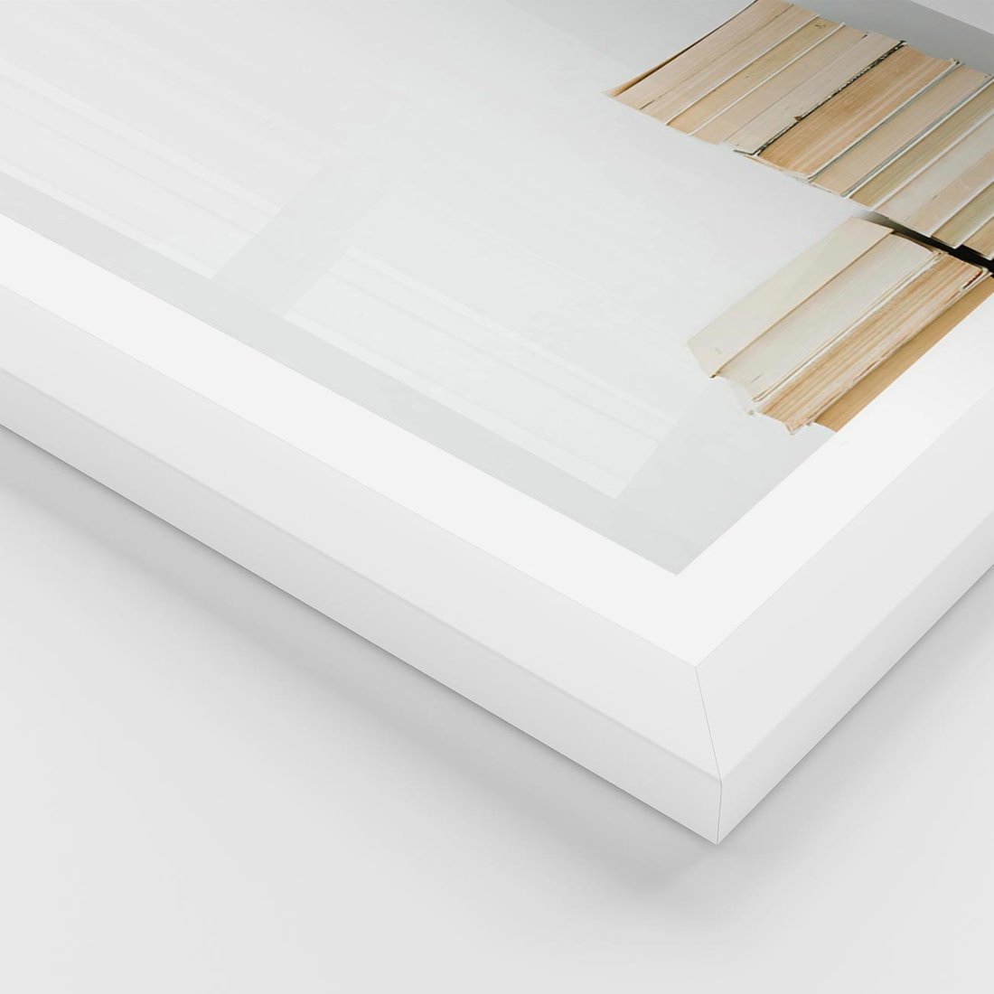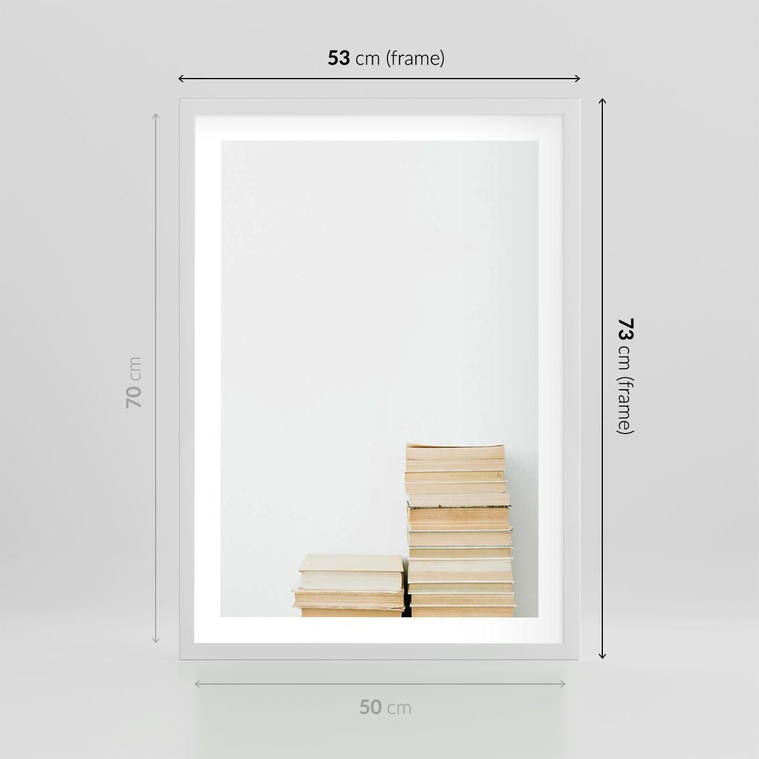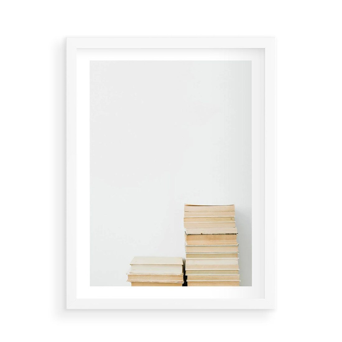 Plakat w ramie 50x70 - Stos Zakurzonych Opowieści - stos książek, ksiązki na stosie - rama biała