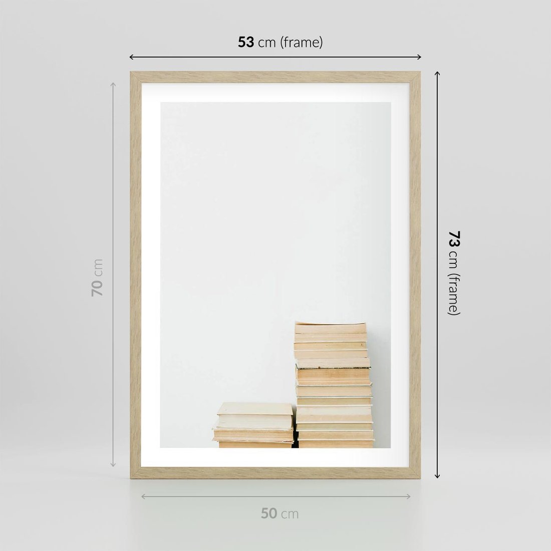 Plakat w ramie 50x70 - Stos Zakurzonych Opowieści - stos książek, ksiązki na stosie - rama drewno