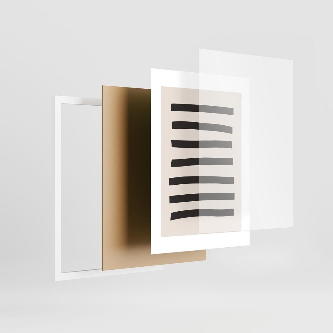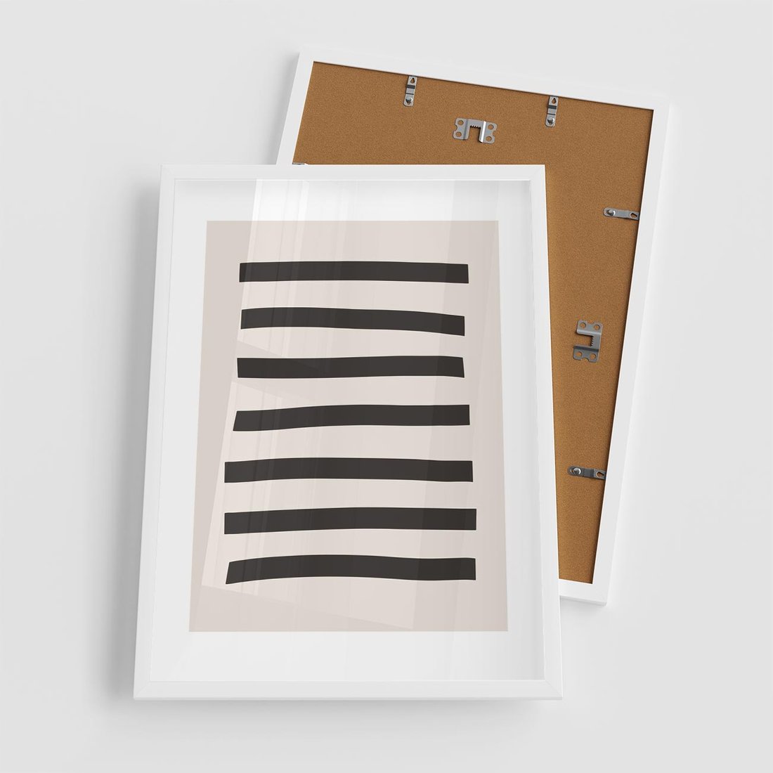Nasz minimalistyczny plakat to eleganckie czarne pasy na spokojnym beżowym tle. To wyjątkowe połączenie tworzy harmonijny akcent, idealny do wprowadzenia do Twojej przestrzeni spokoju i nowoczesnej estetyki minimalizmu.