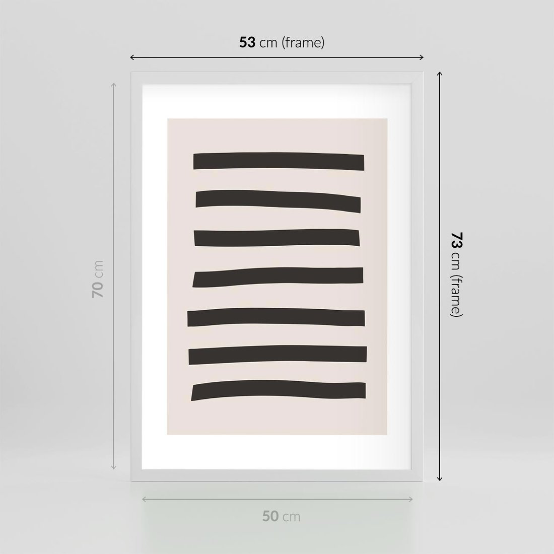 Plakat w ramie 50x70 - Strukturalna Rewolucja Form - minimalizm, czarne pasy - rama biała