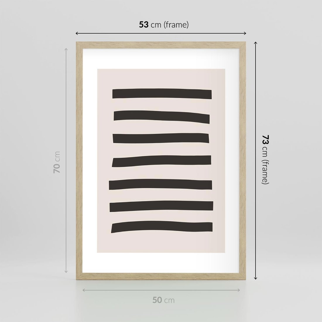 Plakat w ramie 50x70 - Strukturalna Rewolucja Form - minimalizm, czarne pasy - rama drewno